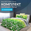 В комплекте: пододеяльник размером 180 * 215 см (прорезь в нижнем шве, длиной 70 см), простыня размером 180 * 220 см, две наволочки размером 70 * 70 см с глубоким клапаном не менее 25 см.