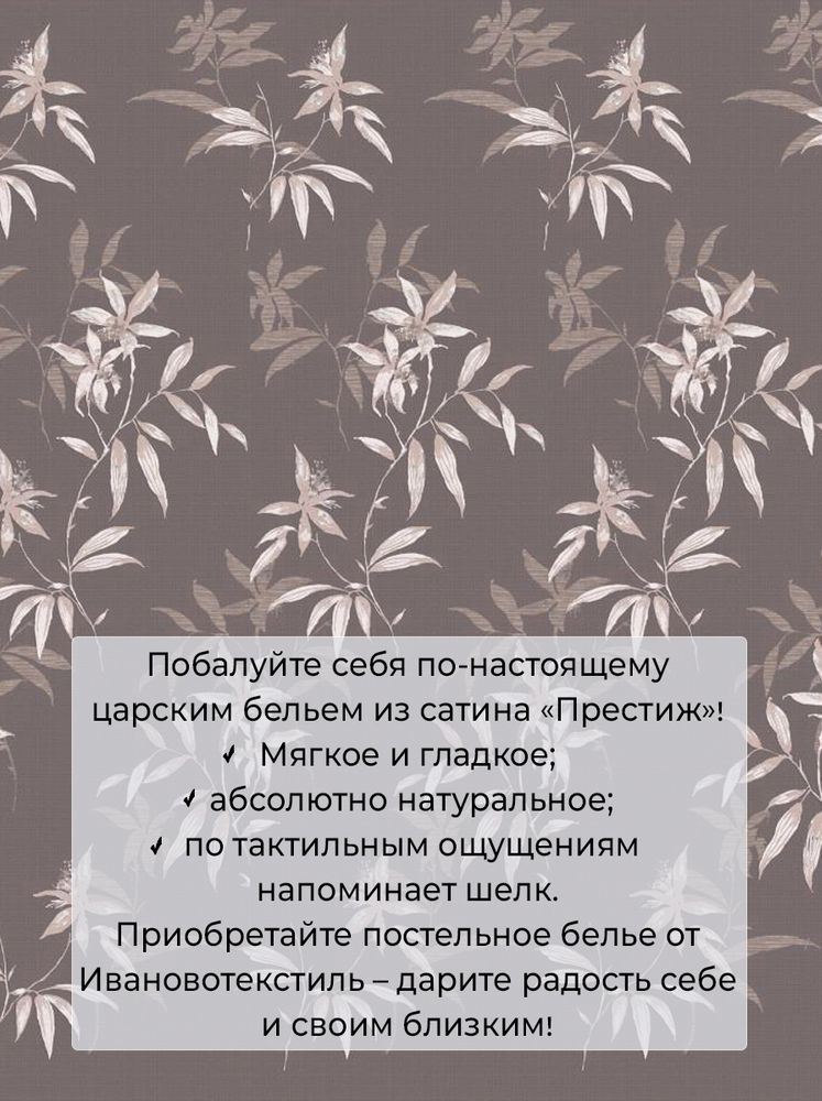 Наше постельное белье Евростандарт из сатина "Престиж" плотностью ткани 115 г/м2 создано для комфортного и приятного сна. В комплекте: пододеяльник 200 * 220 см, оснащенный удобной потайной застежкой на молнии, простыня 240 * 220 см, наволочки 70 * 70 см на молнии - 2 штуки, 50 * 70 см на молнии - 2 штуки. Сатин "Престиж" - это ткань из 100% хлопка, с благородным блеском, который придает изделиям определенный шик, а нежная и гладкая поверхность не оставит никого равнодушным. Постельное белье из сатина служит долго, так как ткань почти не изнашивается (не вытягивается, не деформируется), оно гипоаллергенное, мало сминаемое, дышащее, приятное по тактильным ощущениям, поэтому отдыхать на постельном белье из сатина весьма приятно. Порадуйте себя и своих близких нашим комплектом постельного белья из сатина «Престиж», ведь это идеальный подарок на любой праздник.