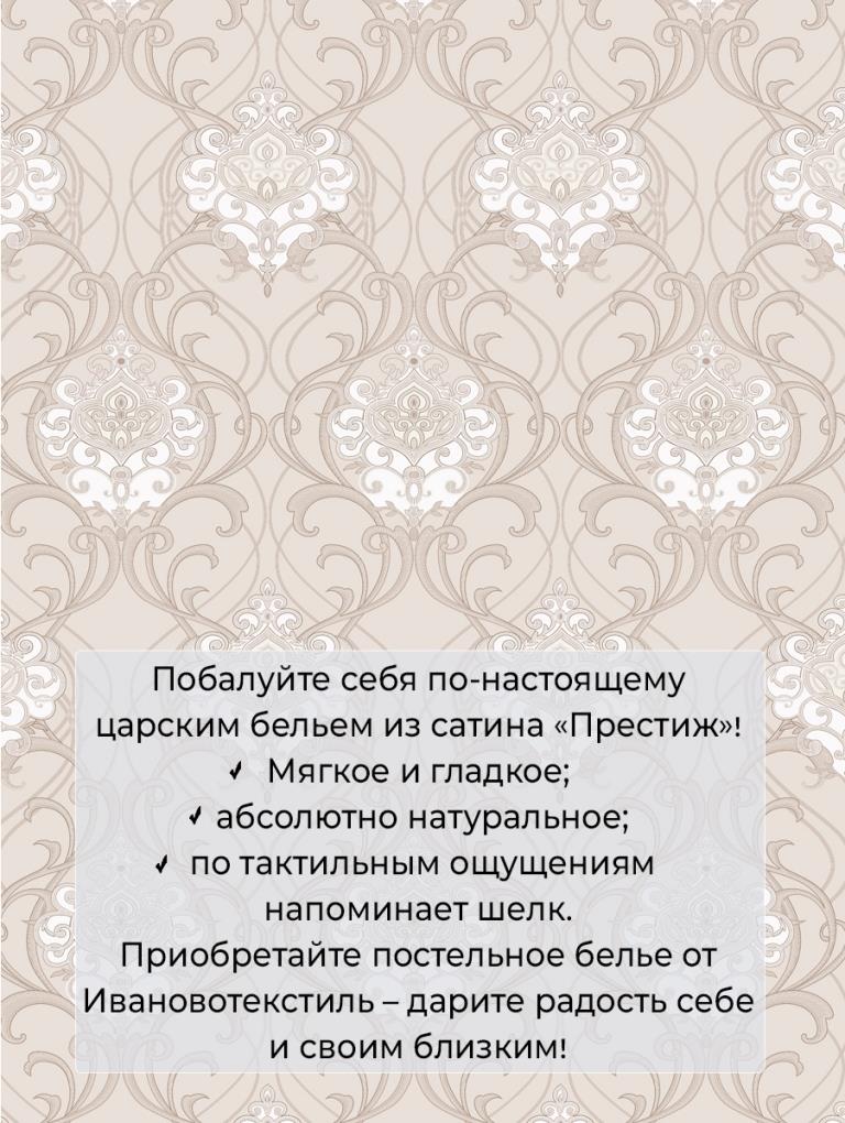 Семейное постельное белье из сатина «Престиж» плотностью ткани 115 г/м2 - идеальное решение для создания уюта и комфортного сна. В комплекте: 2 пододеяльника 150 * 215 см, оснащенных удобной потайной застежкой на молнии, простыня 240 * 220 см, наволочки 70 * 70 см на молнии - 2 штуки, 50 * 70 см на молнии - 2 шт. Постельное белье из сатина «Престиж» нежное, мягкое, похожее на шёлк, но при этом прочное, износостойкое, выдерживает многочисленные стирки, не теряя исходного цвета. Семейный комплект постельного белья из сатина «Престиж» с роскошным дизайном и великолепным качеством ткани и пошива прослужит долго и будет радовать Вас и ваших близких.