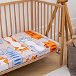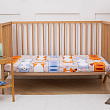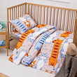 Ткань комплекта имеет плотность 119 г/м2 и состоит из 100% хлопка, что обеспечивает естественную вентиляцию кожи и позволяет ей дышать во время сна. Кроме того, это постельное белье очень комфортно, не деформируется и отлично впитывает влагу, что способствует полноценному отдыху вашего ребенка.