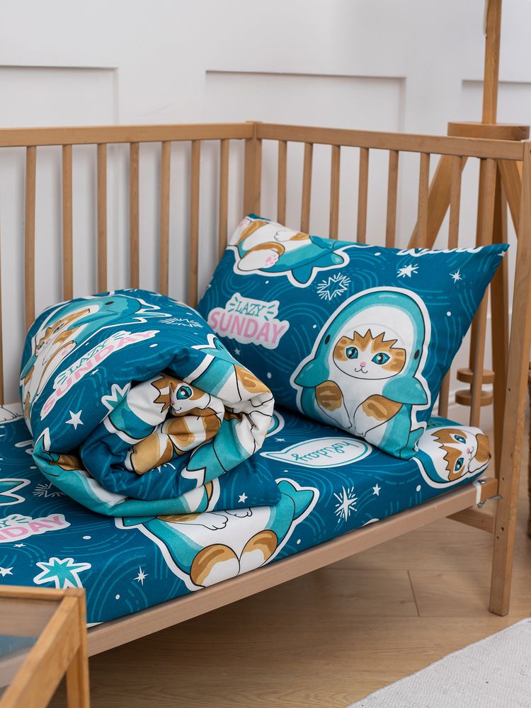 Ткань комплекта имеет плотность 119 г/м2 и состоит из 100% хлопка, что обеспечивает естественную вентиляцию кожи и позволяет ей дышать во время сна. Кроме того, это постельное белье очень комфортно, не деформируется и отлично впитывает влагу, что способствует полноценному отдыху вашего ребенка.