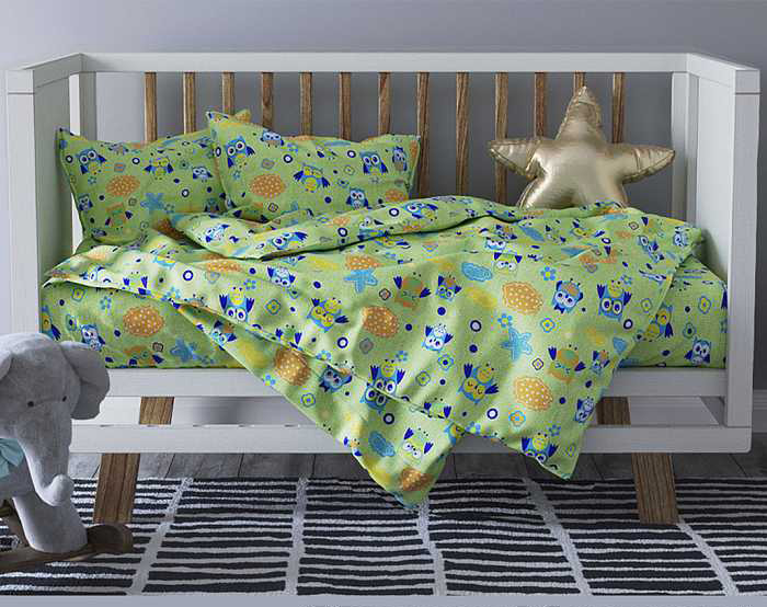 Ткань комплекта имеет плотность 119 г/м2 и состоит из 100% хлопка, что обеспечивает естественную вентиляцию кожи и позволяет ей дышать во время сна. Кроме того, это постельное белье очень комфортно, не деформируется и отлично впитывает влагу, что способствует полноценному отдыху вашего ребенка.
