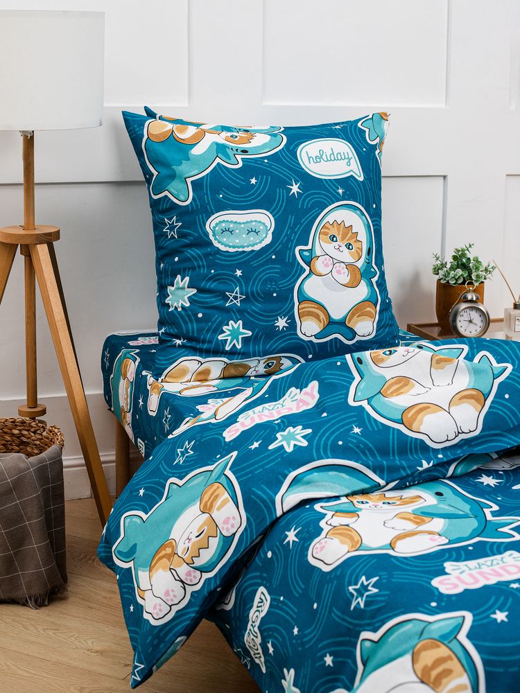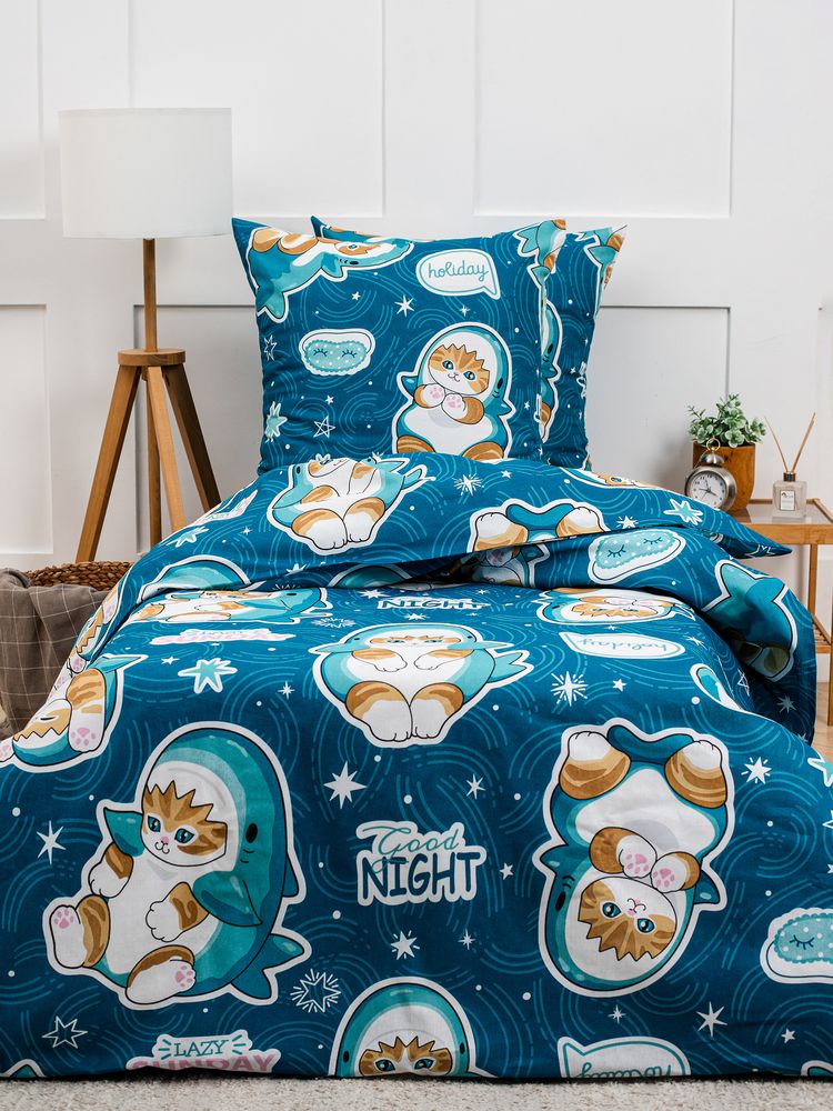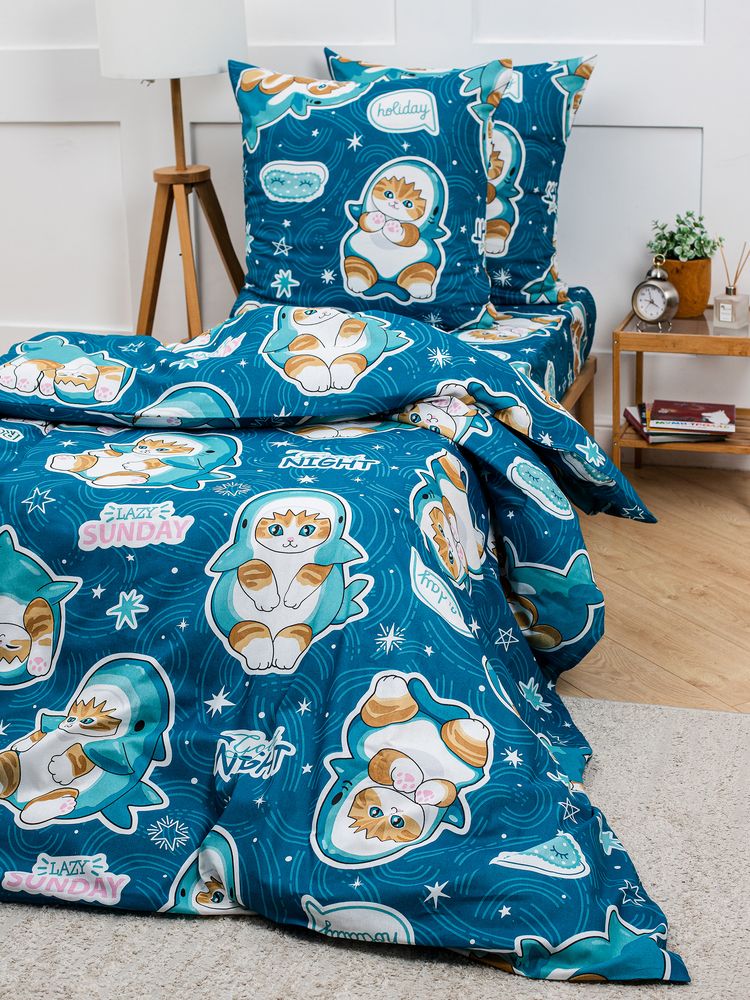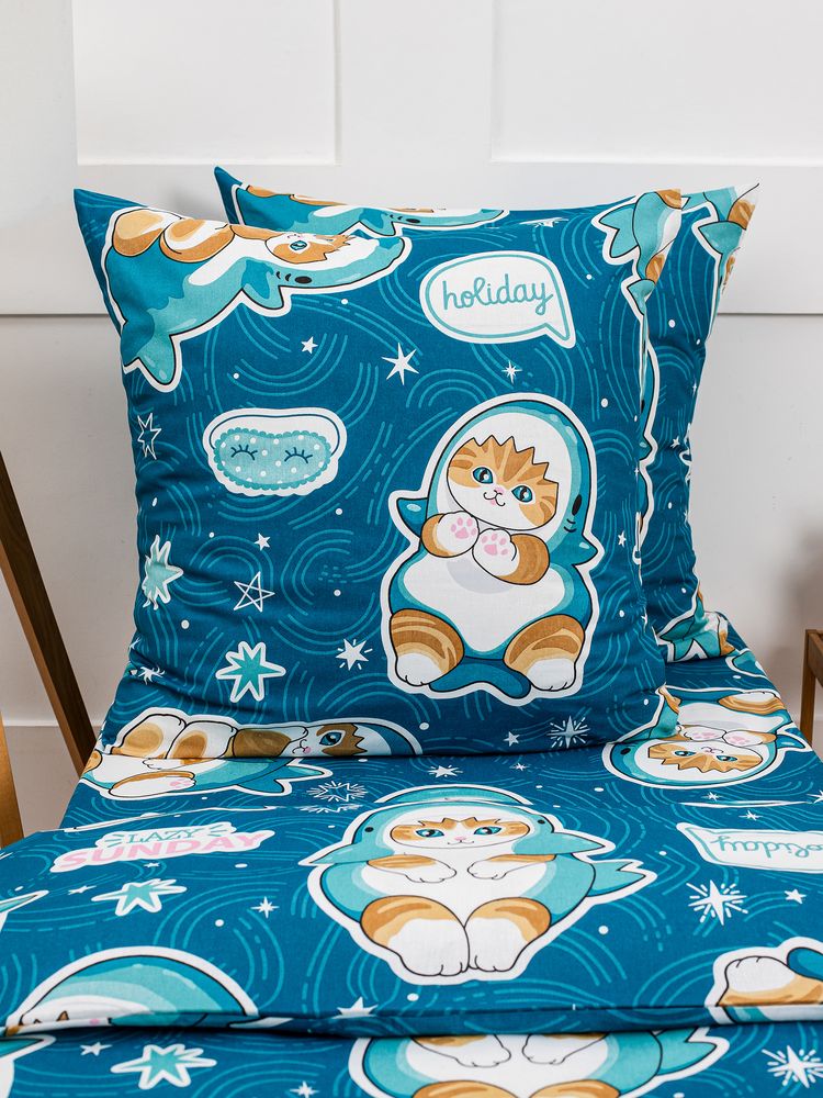 —Наволочка 70*70 см, бязь "Комфорт", детская расцветка (Кот Акула)