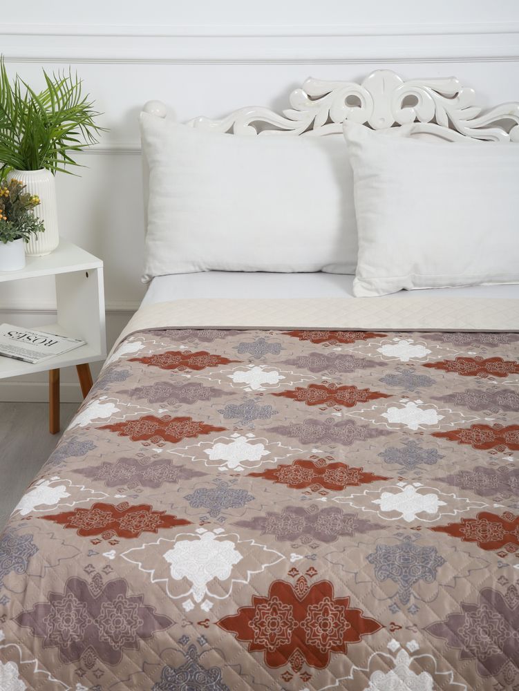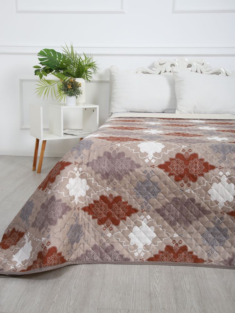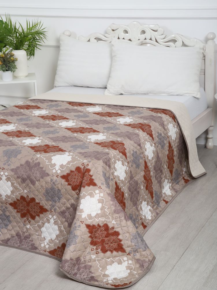 Покрывало имеет размерность евро 240 см в ширину и 200 см в длину, что позволяет его использовать на больших кроватях. Плотность 100 г/м2. Состав 50% хлопок, 50 % полиэстер. Выполнено в технике современной термостежки, не повреждающей ткань верха. Данный цвет покрывала придаст вашей спальне яркости и стиля. Покрывало украшено атласной бейкой, что придает ему изысканный вид. Выбирая покрывало Евро "Ультрастеп", вы получаете качественный и стильный элемент декора для вашей спальни, который прослужит вам долгие годы.