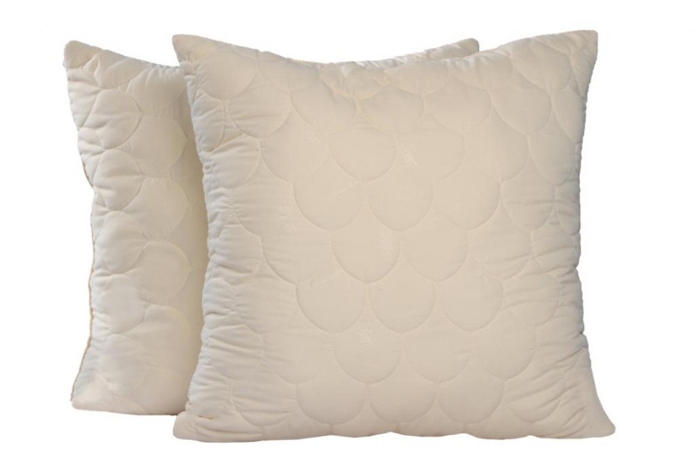 Ядро подушки: силиконизированное волокно; цвет сливочный с логотипом ветки бамбука или белый.
