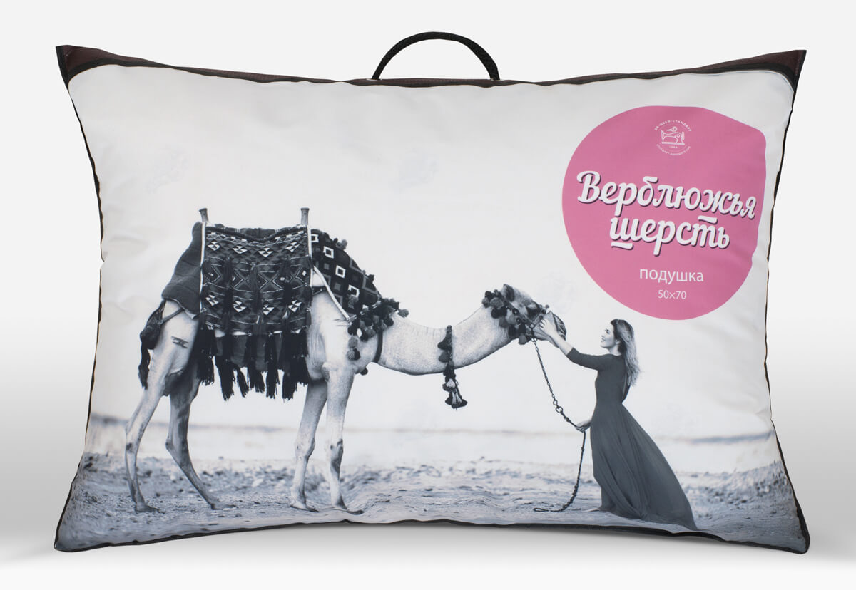 Чехол этой упругой подушки простёган с верблюжьей шерстью, его материал отталкивает пыль и не впитывает запахи. Сочетание шерсти и высокоизвитого волокна, обработанного силиконом, создает особый микроклимат во время сна. Строение волосков позволяет верблюжьей шерсти хорошо впитывать выделяемую телом влагу, а благодаря отличной циркуляции воздуха оно так же легко просыхает.