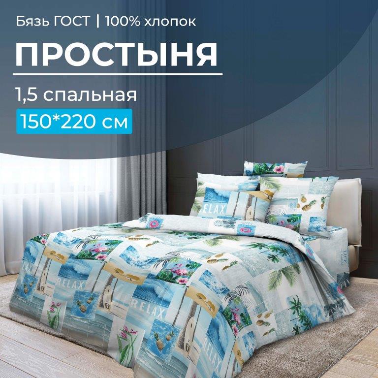 Простыня 1,5-спальная размером 150*220 см изготовлена из высококачественной  бязи ГОСТ, плотность ткани – 140 г/м2. Это очень практичный материал, имеющий длительный срок службы. Бязь ГОСТ не линяет, не закатывается, сохраняет внешний вид после большого количества стирок. Она прекрасно впитывает влагу, не липнет к телу и не электризуется, так как состав её – 100% хлопок . Рисунки на простыни смотрятся ярко и четко.   Мы являемся производителями, сами следим за выпускаемой продукцией и гарантируем высокое качество! Наши изделия произведены в Ивановской области, имеют сертификацию качества "ГОСТ 31307-2005", а также зарегистрированы в государственной системе маркировки "Честный знак".