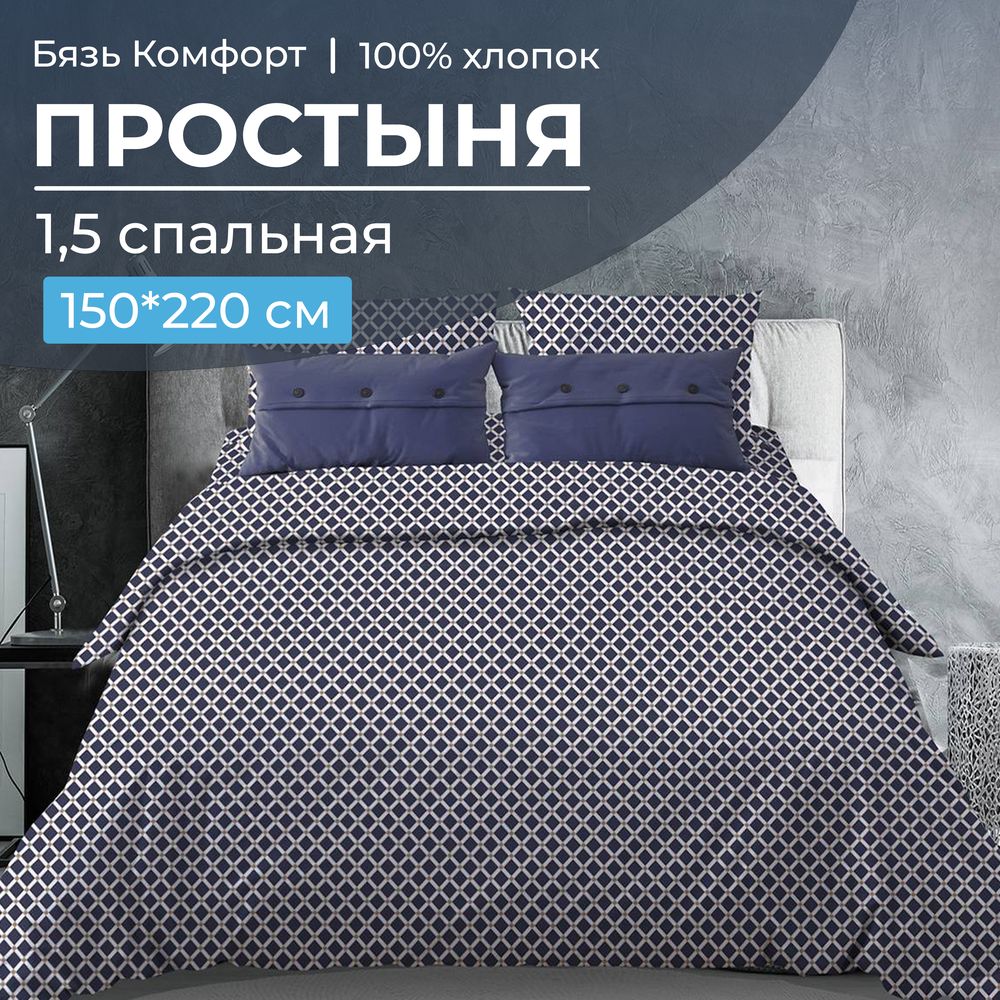—Простыня 1,5 спальная, бязь "Комфорт"(220) (Виши, темно-синий)