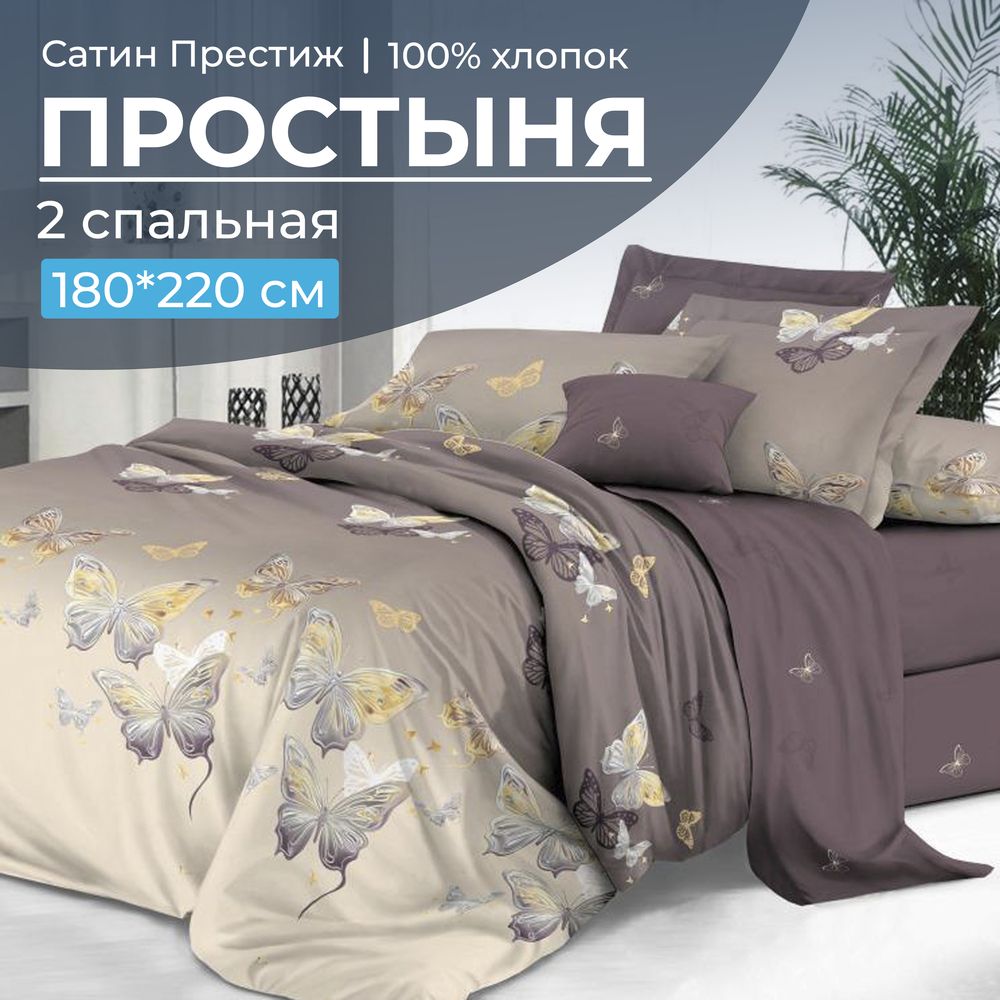 Простыня 2-спальная, сатин "Престиж" (Прекрасные бабочки (компаньон))