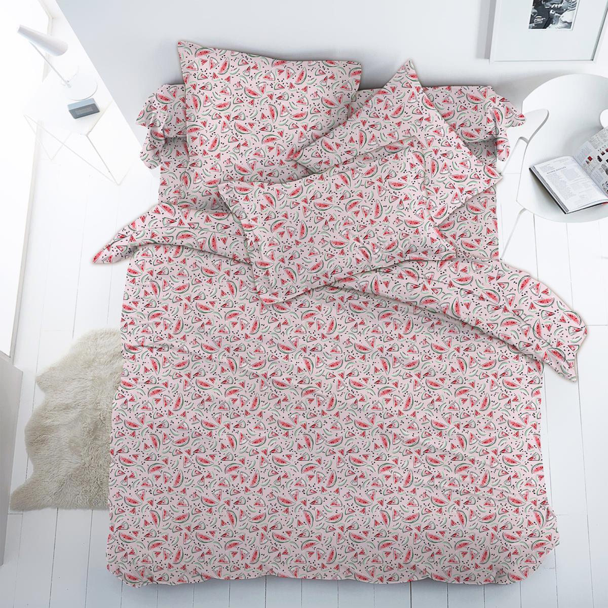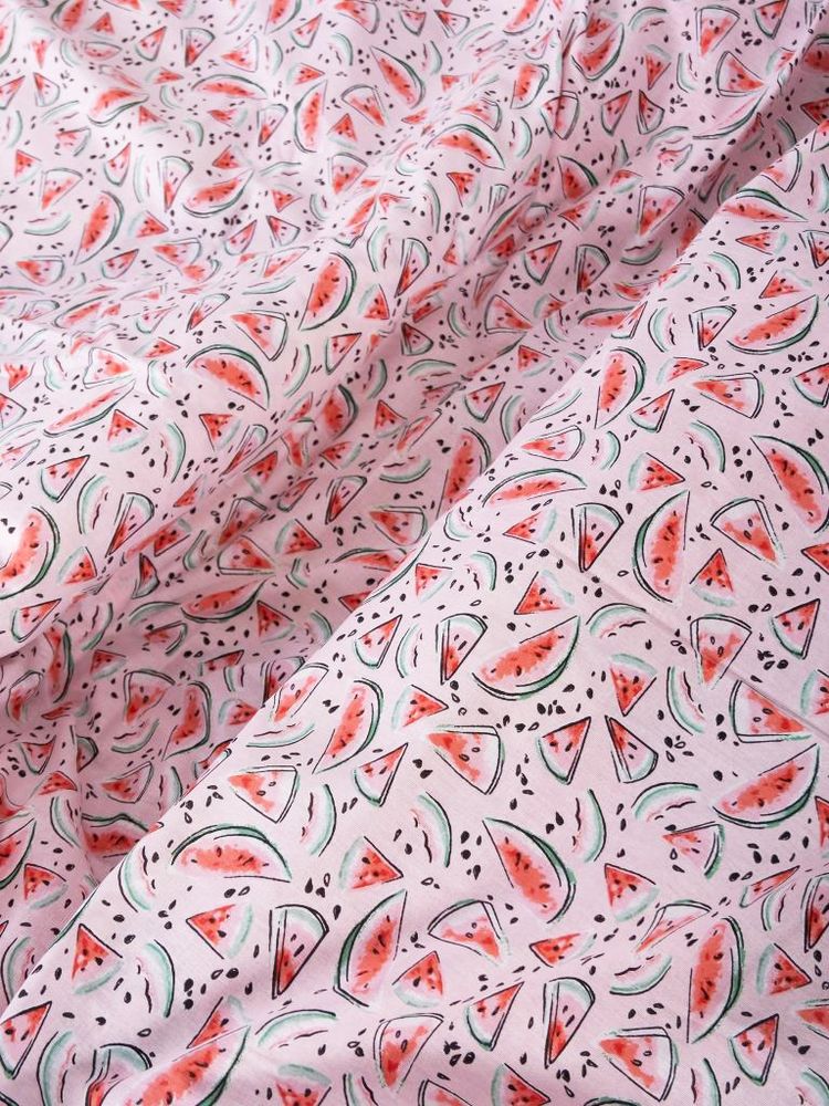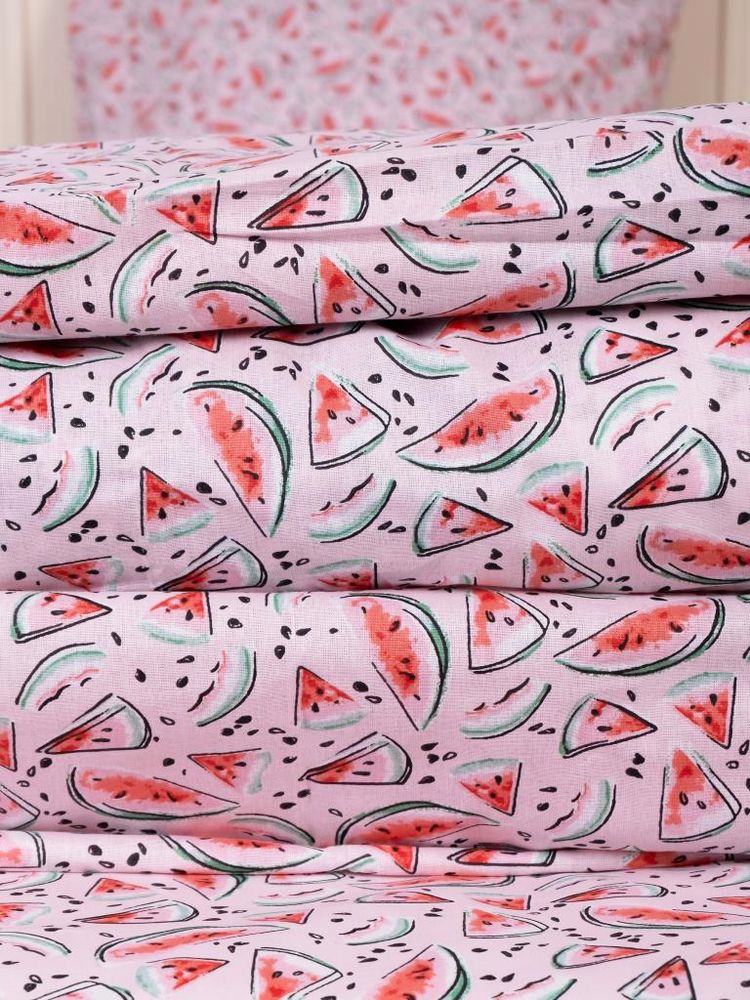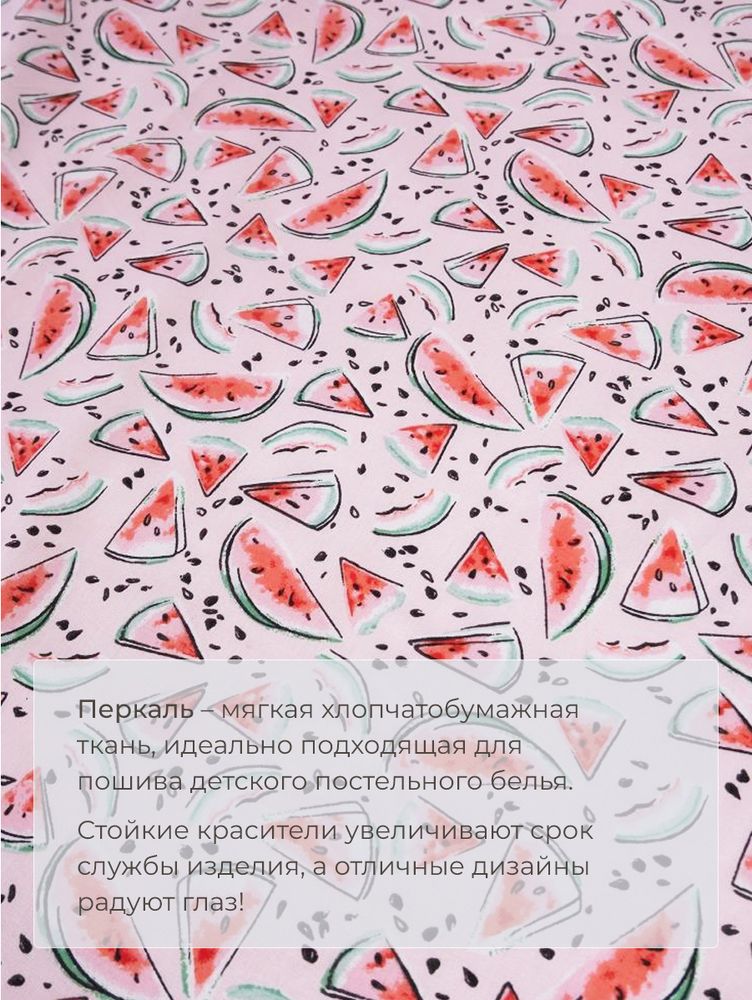 —Простыня 100*150 см в детскую кроватку, перкаль, детская расцветка (Арбузики, розовый)