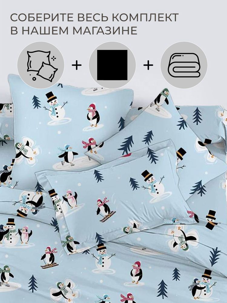 —Простыня 100*150 см в детскую кроватку, перкаль, детская расцветка (Пингвинята)