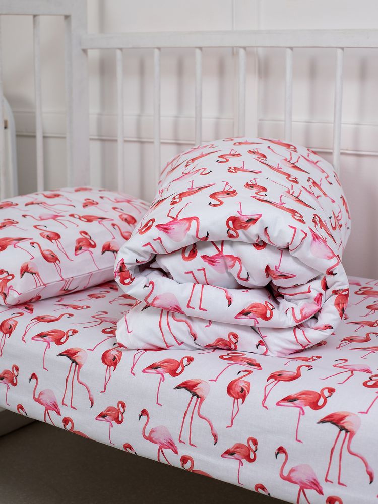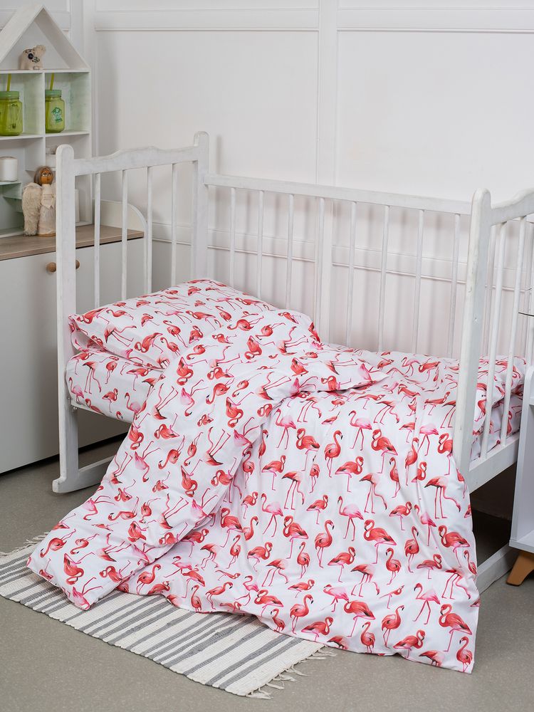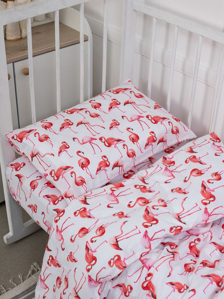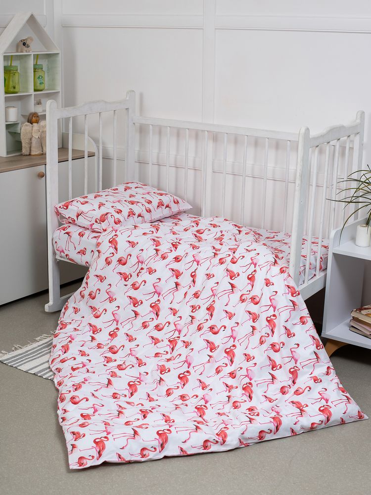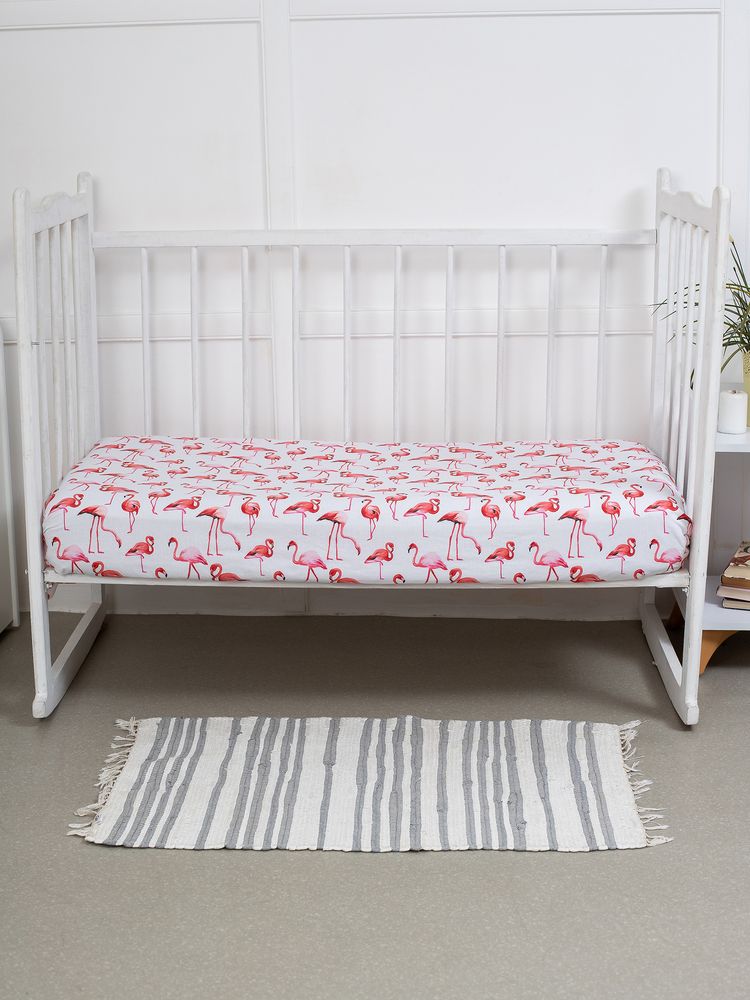 Простыня 100*150 см в детскую кроватку, перкаль, детская расцветка (Фламинго)