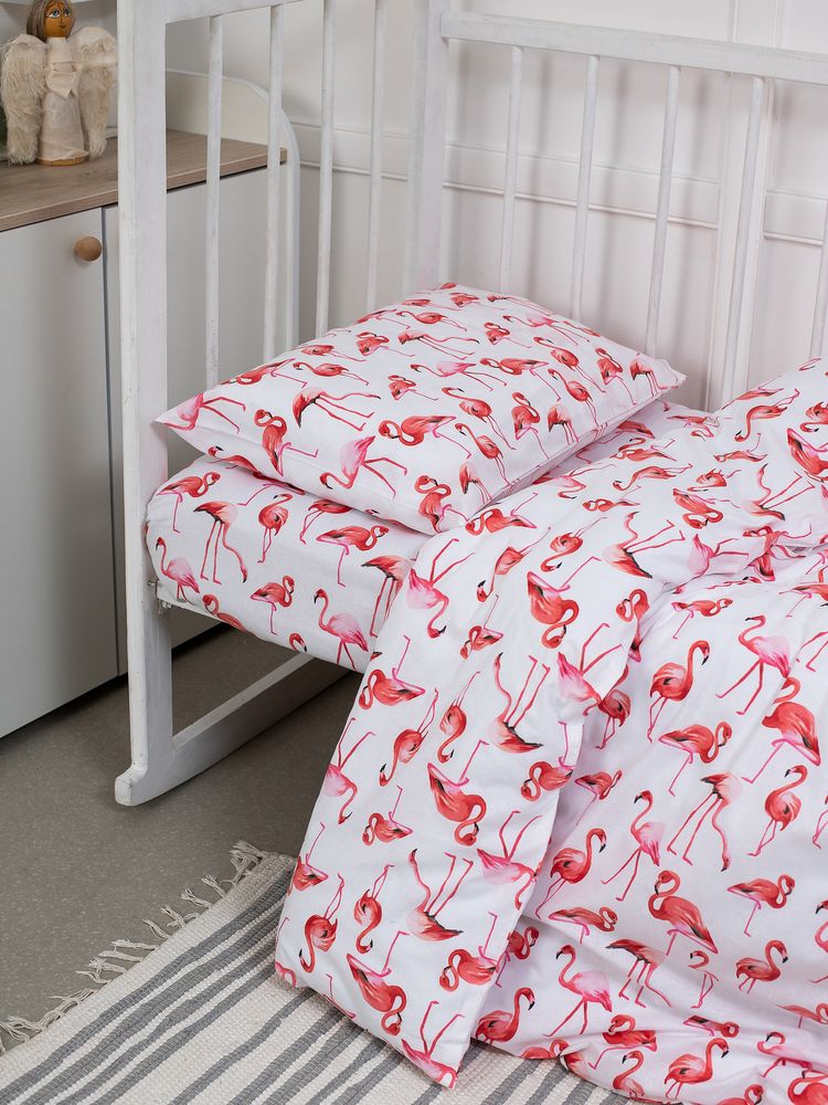 —Простыня 100*150 см в детскую кроватку, перкаль, детская расцветка (Фламинго)