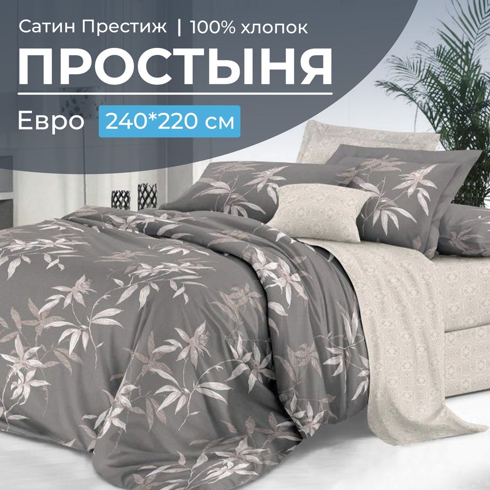 Простыня Евро 240*220 см, сатин "Престиж" (Джиллиан (компаньон))