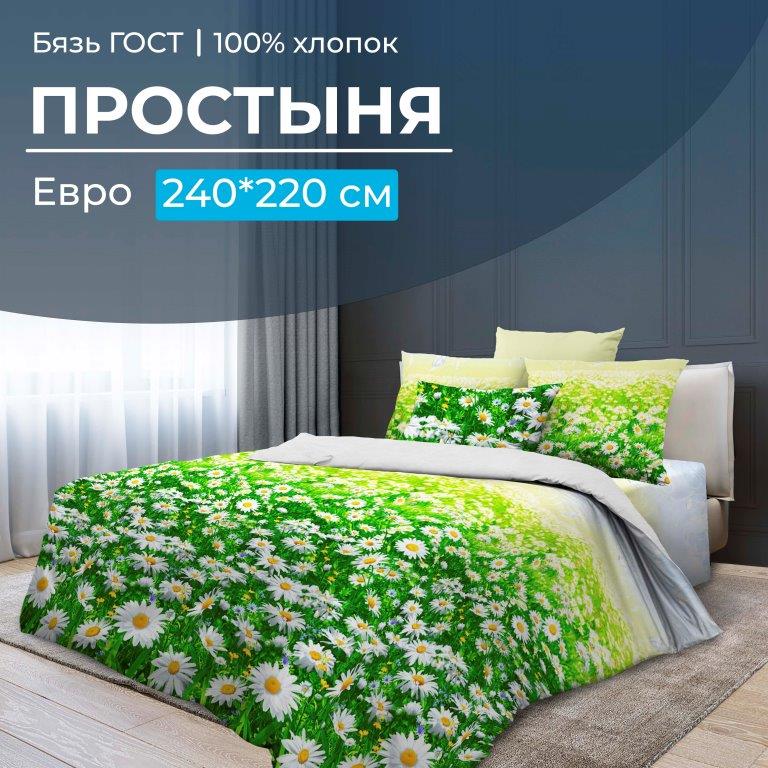 —Простыня Евро 240*220 см, бязь ГОСТ (Ромашковое поле)