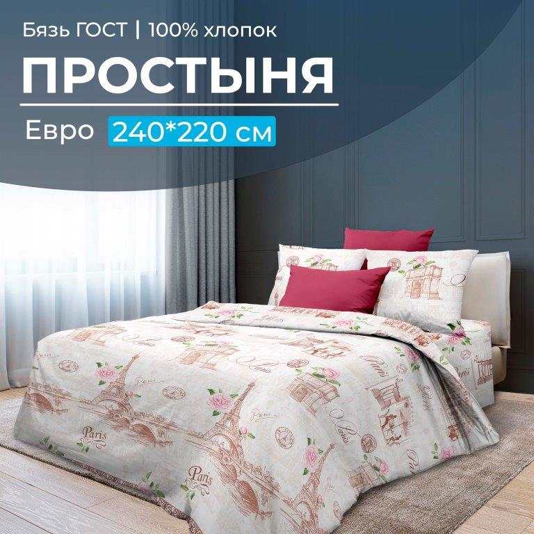 —Простыня Евро 240*220 см, бязь ГОСТ (Парижанка)