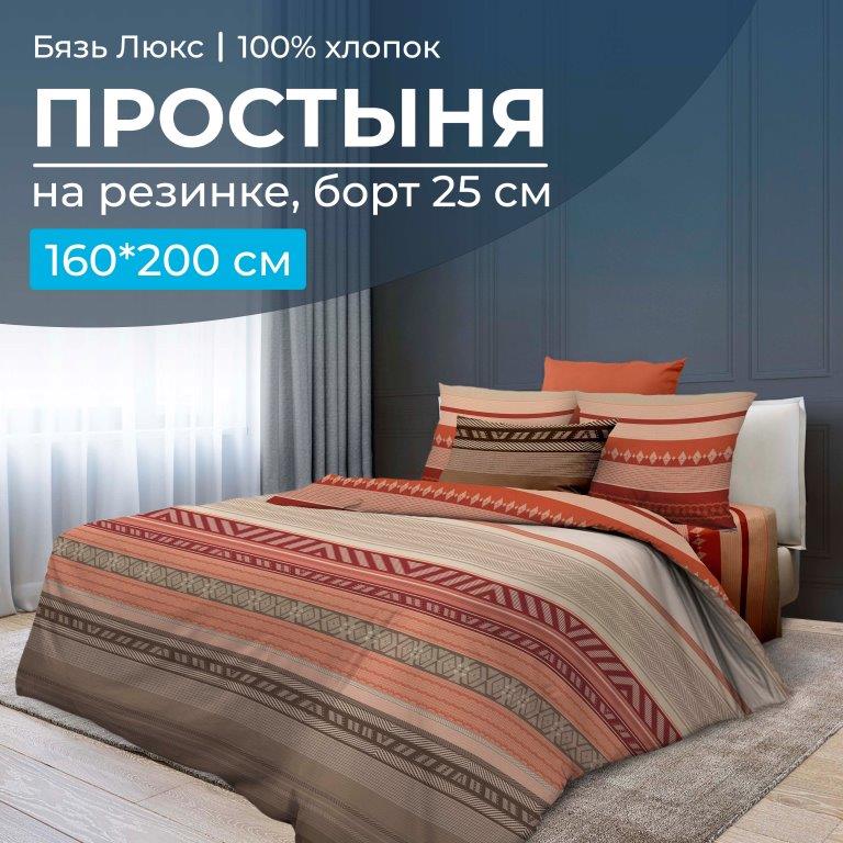 —Простыня на резинке 160*200 см, бязь "Люкс", борт 25 см (Dakar)