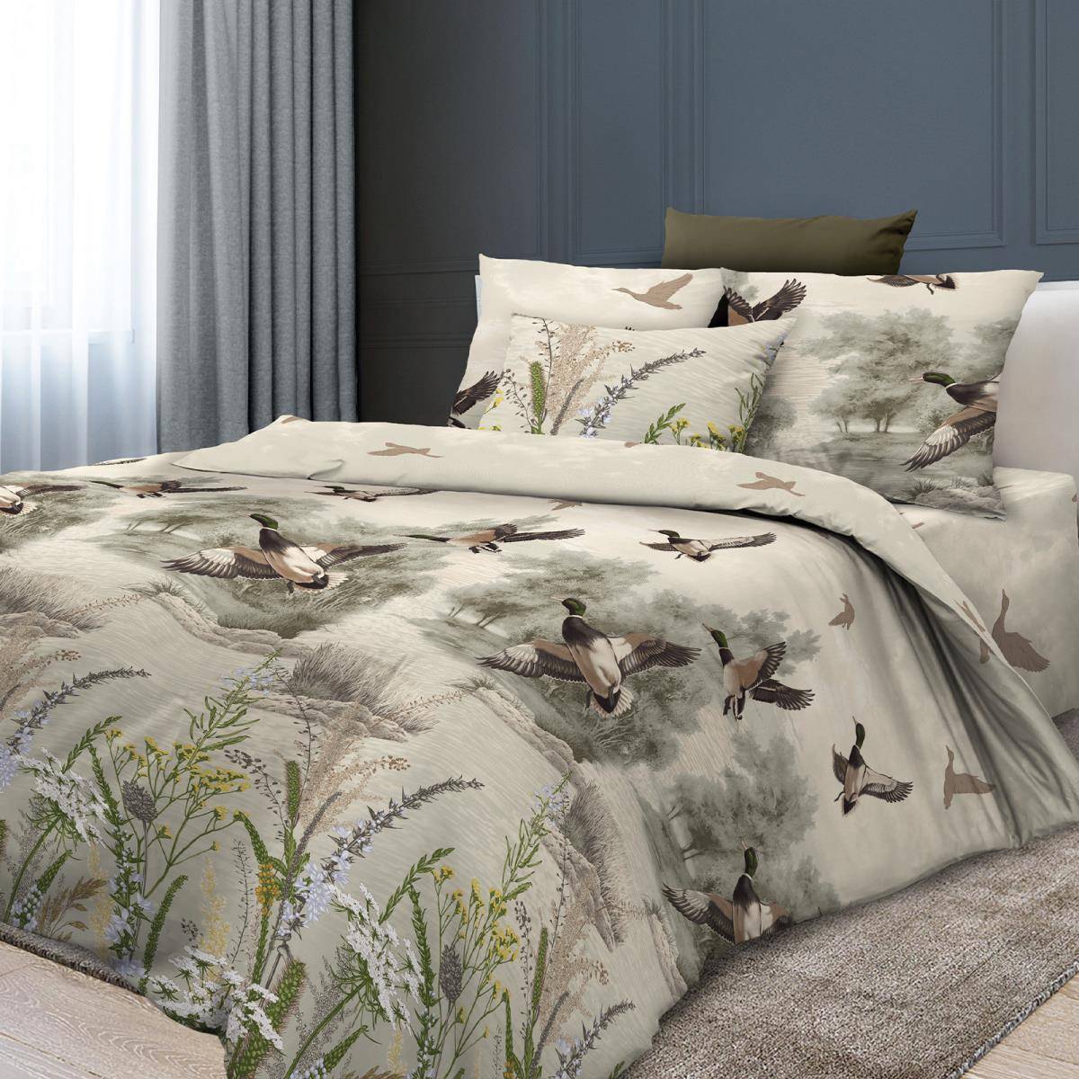 —Простыня на резинке 120*200 см, бязь ГОСТ, борт 25 см (Утиная охота)