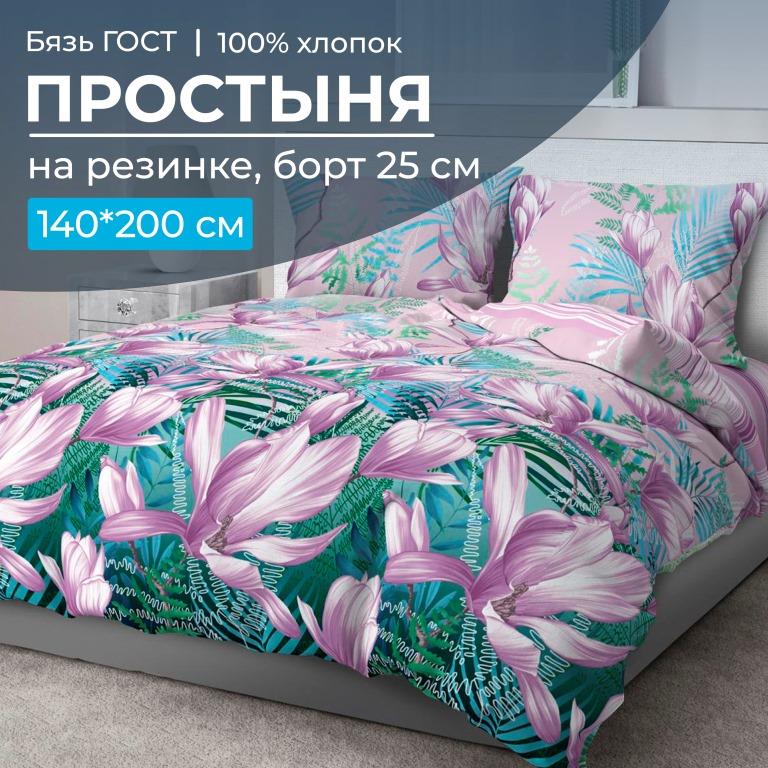 —Простыня на резинке 140*200 см, бязь ГОСТ, борт 25 см (Летиция)