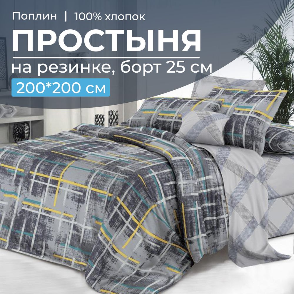 Простыня на резинке 200*200 см, поплин, борт 25 см
