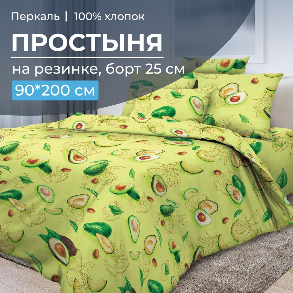 —Простыня на резинке 090*200 см, перкаль, борт 25 см (Авокадо)