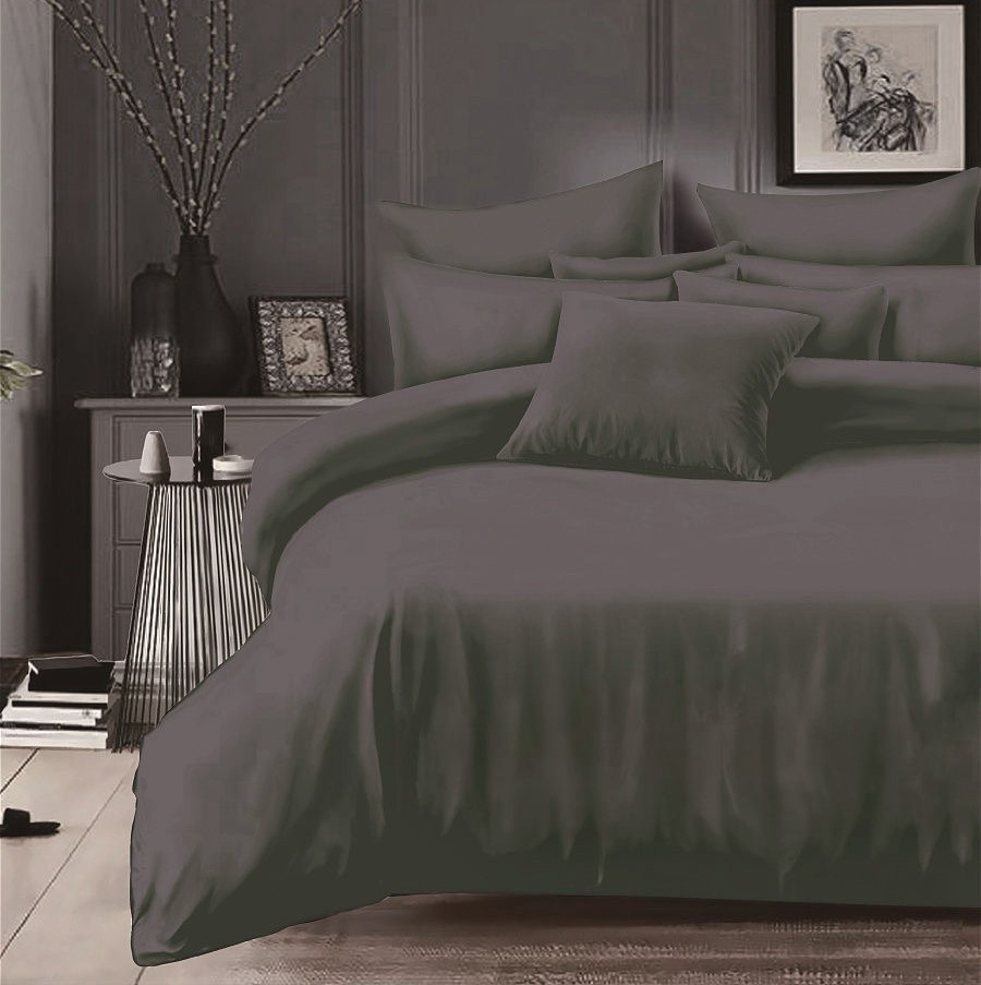 —Простыня на резинке 090*200 см, сатин однотонный, борт 25 см (Графит)