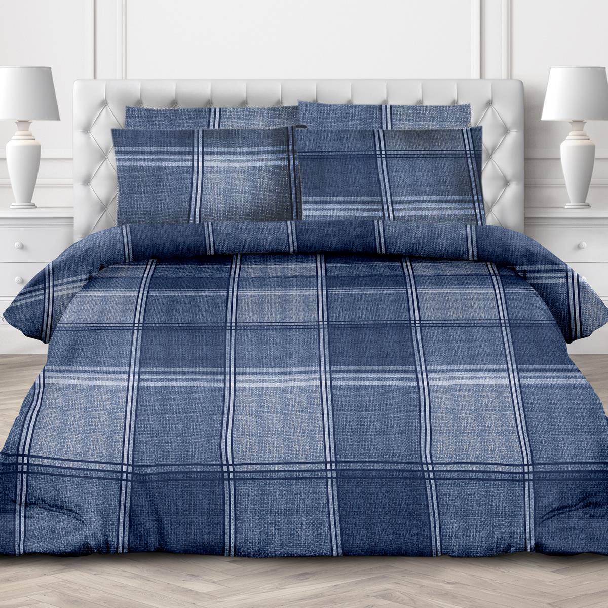 —Простыня на резинке 200*200 см, бязь "Люкс", борт 20 см (Tweed, синий)