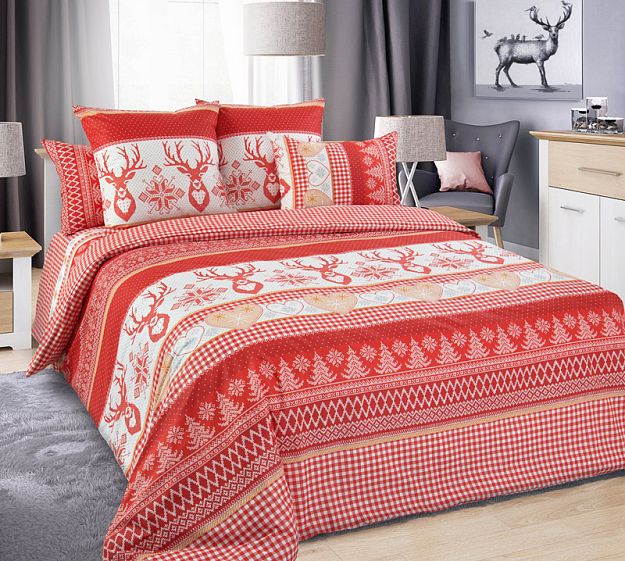 —Простыня на резинке 160*200 см, перкаль, борт 25 см (Лапландия, красный)