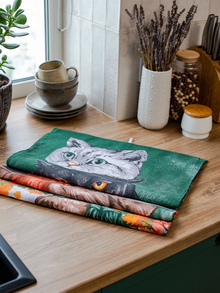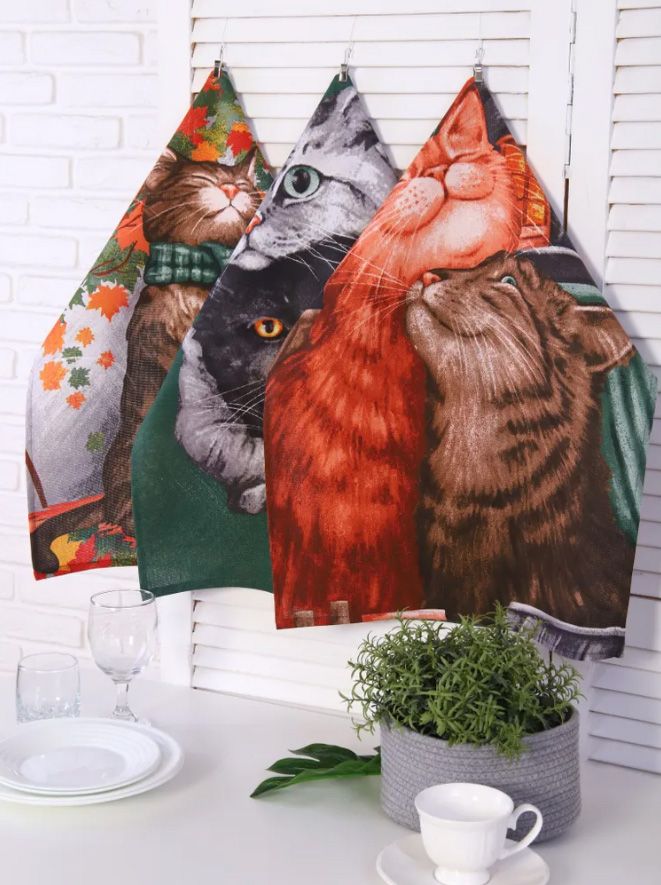 —Комплект полотенец 48*60 см, 3 шт., рогожка (Котики)