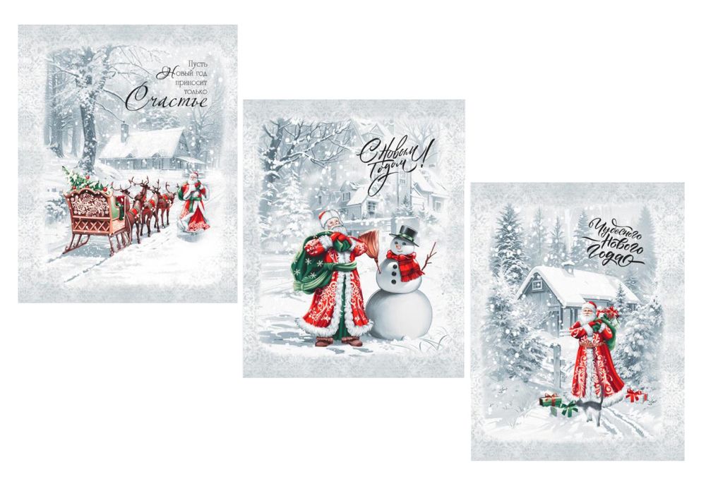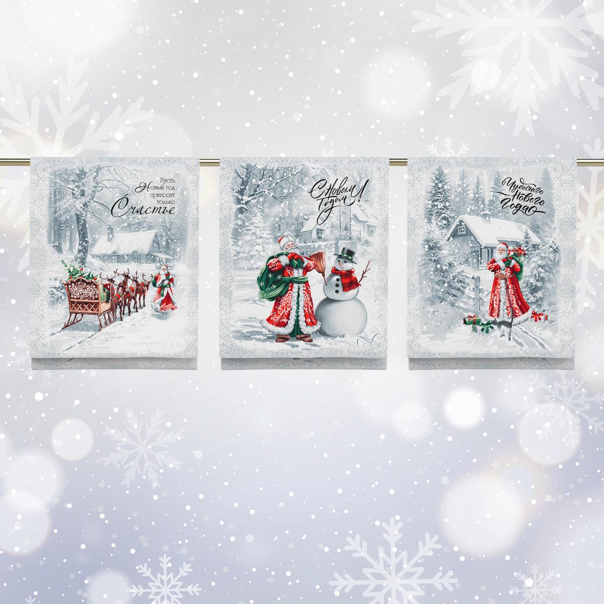 Комплект полотенец 48*60 см, 3 шт., рогожка (Ретро Новый год)