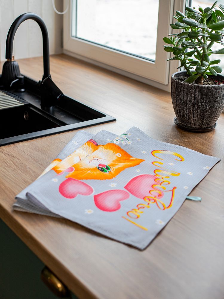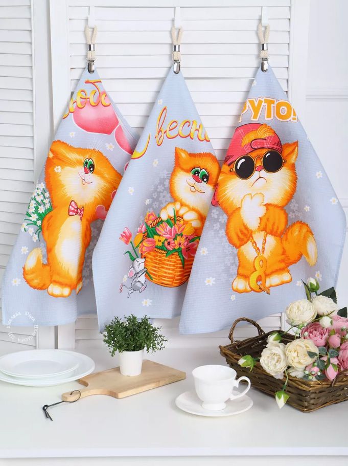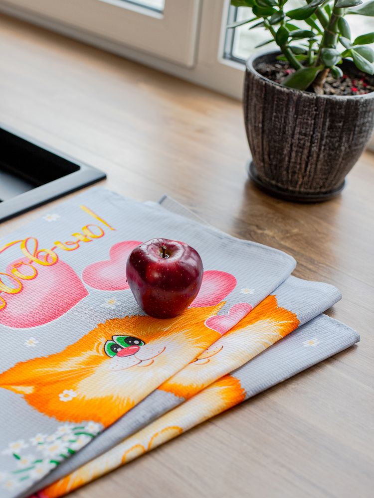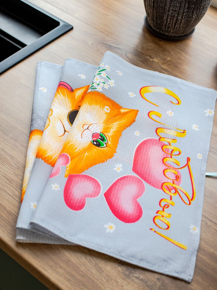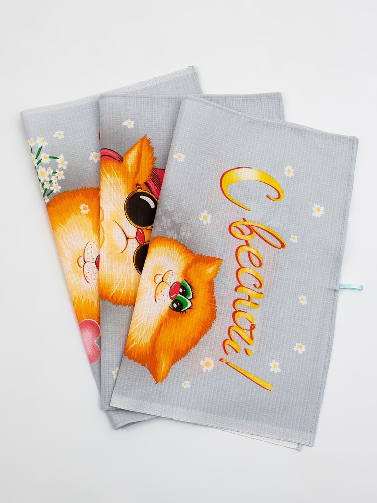 Комплект вафельных полотенец 48*60 см, 3 штуки (Обнимяу)