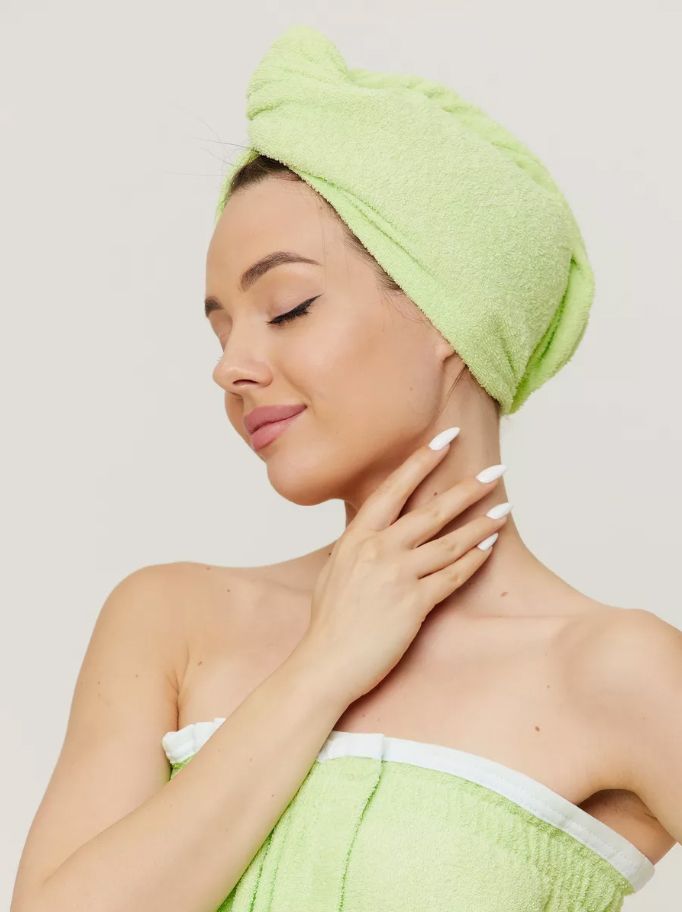 Полотенце для волос махровое чалма - это удобная замена большому банному. Очень легко надевать и снимать, не спадает с головы за счет фиксации чалмы на пуговицу. Достаточно просто опустить голову вниз, укутать волосы, перекинуть один раз через голову и застегнуть. Мягкая ткань 100% хлопок не травмирует локоны и помогает поддерживать здоровый и сияющий блеск волос. Для защиты от термического воздействия используйте шапочку в бане, сауне или хаммам. Как спортивное полотенце в тренажерном и спортивном зале, после водных процедур. Банное полотенце очень компактно, поместится в любой сумочке и на любой полочке. Универсальный размер 20 на 70. За счет застежки не спадет, что позволяет свободно двигаться, не беспокоясь. Тюрбан для сушки легко надевать на любые волосы — длинные, короткие, тонкие и даже самые объемные кудрявые. Полотенца для ванной очень качественные, отлично впитывают влагу в отличие от микрофибры, не линяет при стирке в горячей воде, долговечно, что не скажешь о вафельных. Оригинальный подарок подруге, не нужно ломать голову что подарить бабушке или чем порадовать сестру, свекровь, себе любимой в дом на любой праздник.