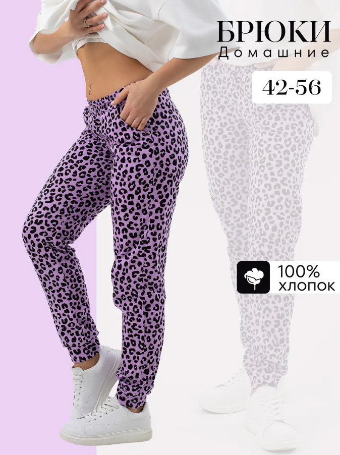 Брюки домашние женские из трикотажа (кулирная гладь, 100 % хлопок) - один из обязательных предметов домашнего гардероба. Для более комфортного использования в пояс вшита широкая резинка с закрепкой на поясной машине. Тип посадки - средняя. Рост универсальный, так как брюки на манжете. Длина по внутреннему шву 79 см. Есть два кармана с отрезным бочком. Эти брюки со свободным кроем не сковывают движений. Универсальная модель подойдёт как для комфортного сна, так и для домашней носки, дачи и спорта. Ткань джогеров слабо поддается растяжению и усадке. Многократные стирки и глажки хлопковые ткани переносят хорошо, долгое время не теряя при этом своих характеристик. Размерная сетка модели 42-56, если нужен больший размер (58-70), рекомендуем артикул б162М. Джоггеры - отличный подарок для всех девушек и женщин. Маме, подруге, бабушке, сестре, коллеге на день рождения или на любой другой праздник!