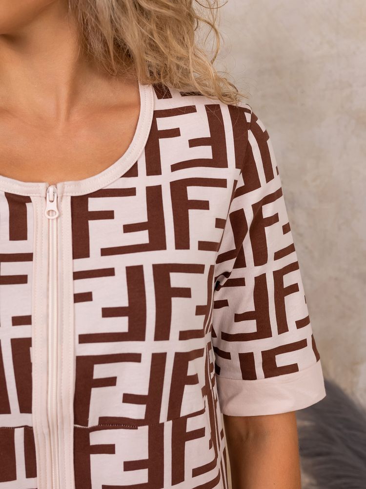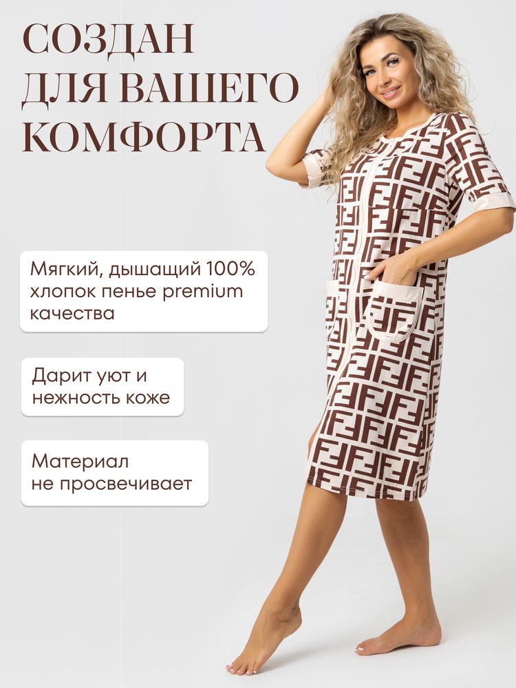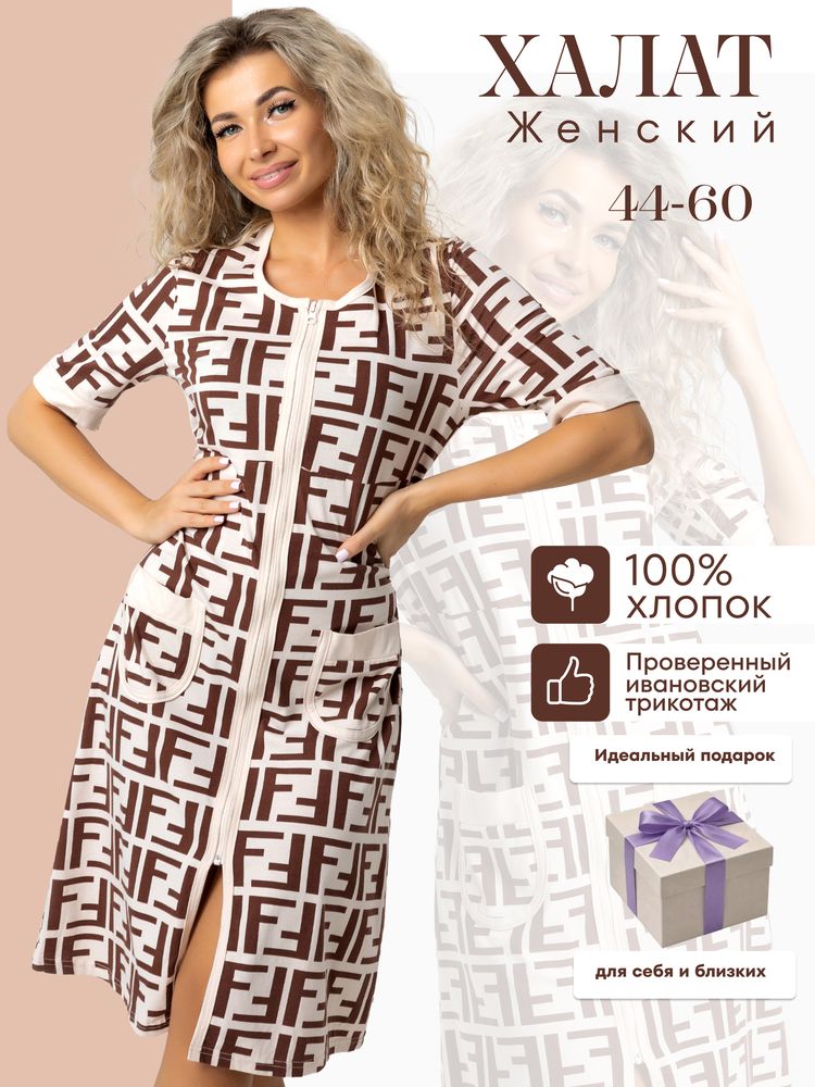 Обратите ваше внимание на женский домашний халат на молнии! С таким халатиком мода дома не умрёт!))) Чудесные расцветки смотрятся свежо и очень нарядно. Изделие имеет широкий размерный ряд: от миниатюрного 44 до больших размеров 54-56. Вы не будете испытывать стеснение и дискомфорт, так как халат изготовлен из хлопковой ткани. Кулирка прекрасно тянется, позволяя Вам свободно двигаться. Длина спинки 98-101 см в зависимости от размера. Полочка длиннее спинки на 5 см. Модель расклешенная, поэтому будет удобна также беременным и кормящим женщинам. Имеются два удобных накладных кармана. Отделка – яркая трикотажная бейка. Очень удобный для выполнения домашней работы короткий рукав. Такая вещь актуальна не только в качестве одежды для дома, она прекрасно смотрится на даче.