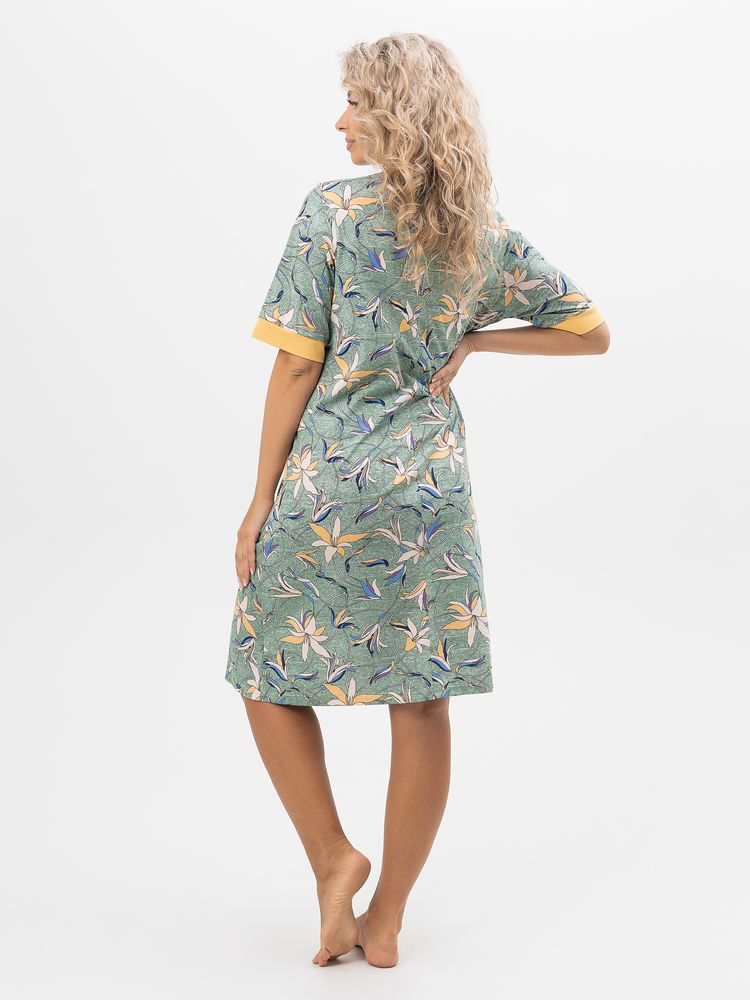 Обратите ваше внимание на женский домашний халат на молнии! С таким халатиком мода дома не умрёт!))) Чудесные расцветки смотрятся свежо и очень нарядно. Изделие имеет широкий размерный ряд: от миниатюрного 44 до больших размеров 54-56. Вы не будете испытывать стеснение и дискомфорт, так как халат изготовлен из хлопковой ткани. Кулирка прекрасно тянется, позволяя Вам свободно двигаться. Длина спинки 98-101 см в зависимости от размера. Полочка длиннее спинки на 5 см. Модель расклешенная, поэтому будет удобна также беременным и кормящим женщинам. Имеются два удобных накладных кармана. Отделка – яркая трикотажная бейка. Очень удобный для выполнения домашней работы короткий рукав. Такая вещь актуальна не только в качестве одежды для дома, она прекрасно смотрится на даче.