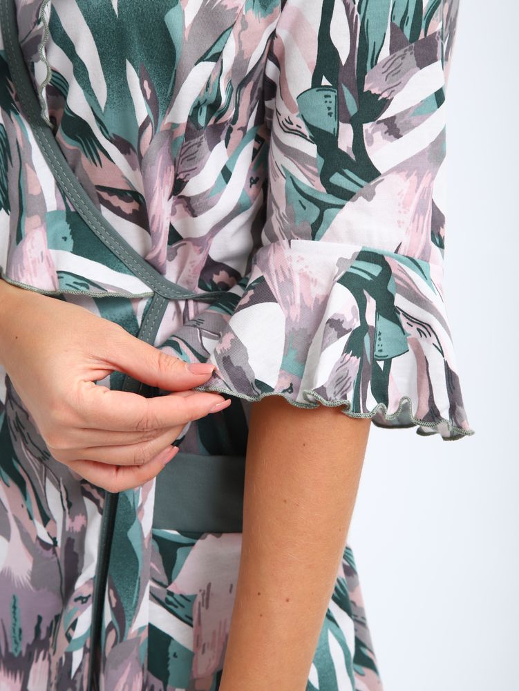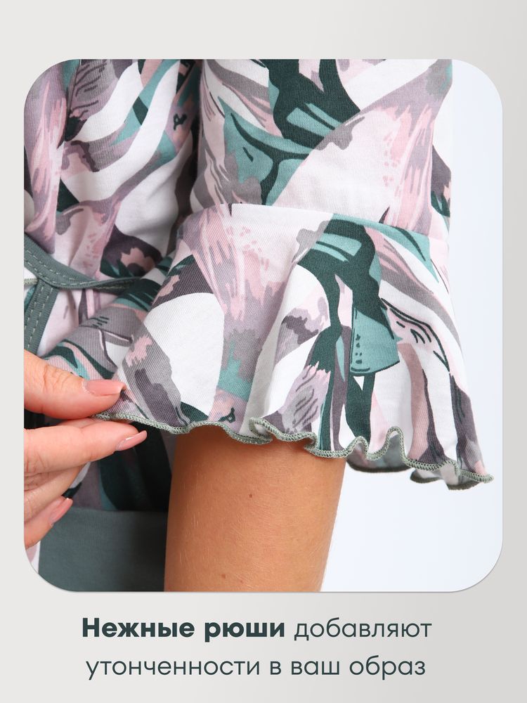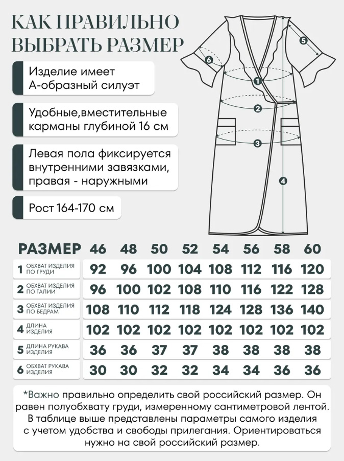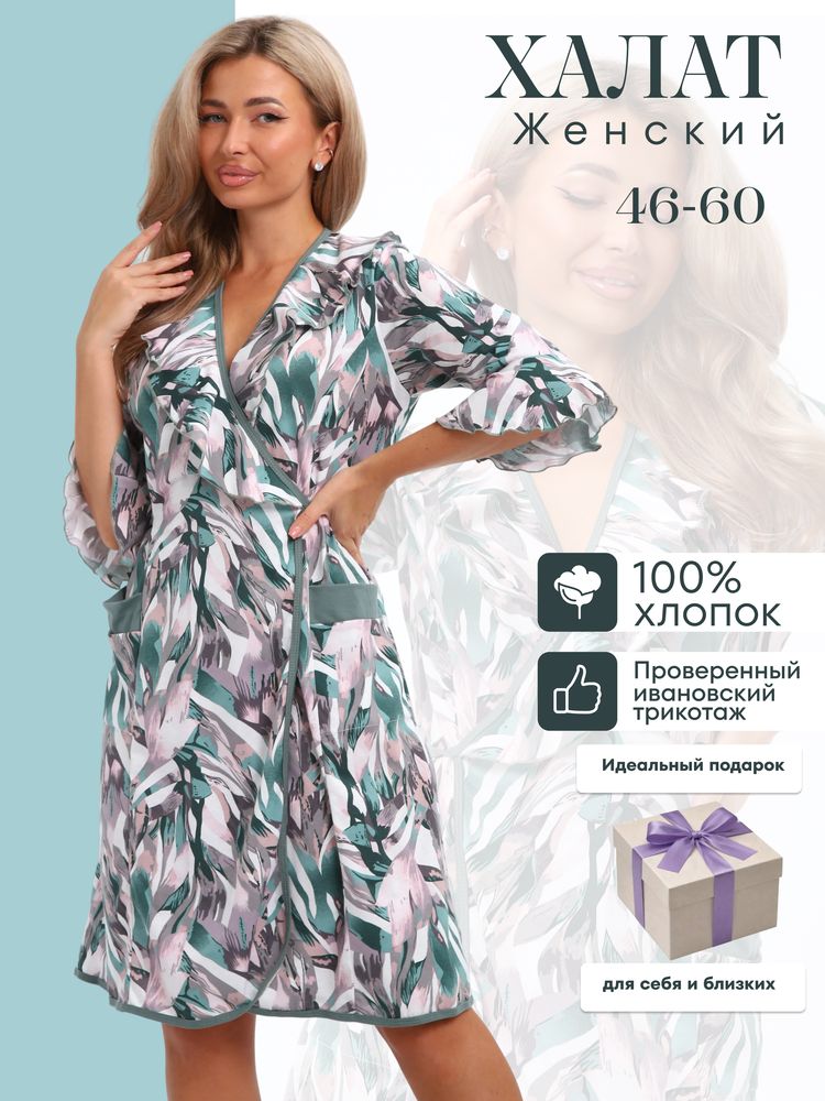 Мягкий халат из хлопка с рукавом 3/4 на запах создан специально для женщин и девушек, которые ценят комфорт и стиль в домашней одежде. Изготовленный из трикотажной кулирки, он идеально подходит на разные размеры, включая больших и полных, а также для беременных и роддома. Особенность модели — v-образный вырез с декоративной отделкой в виде рюш, которые добавляет женственности и легкости образу. Практичные прорезные карманы обеспечивают удобство использования, а запах на завязках позволяет легко подогнать изделие по фигуре. Данная модель халата - отличный выбор для домашнего отдыха и повседневного использования. Этот домашний элемент одежды выполнен с учетом комфорта женщин всех возрастов и особенностей фигуры. Мягкий хлопковый материал бережно касается кожи, обеспечивая приятное ощущение в любое время года. Также изделие отличается продуманным кроем и аккуратной декоративной отделкой, которая подчеркивает индивидуальность и делает халат не только удобным, но и красивым. Удобство модели позволяет использовать ее в разных домашних ситуациях — от утренних сборов до вечернего отдыха. Этот домашний халат с красивым декором понравится многим, кто ищет стильное и функциональное решение на каждый день. Изделие сохраняет форму и мягкость, не сковывая движений. Рукав 3/4 отлично защищает от прохлады, оставаясь при этом удобным и практичным одновременно. Подарок на любой праздник, который точно пригодится — нежная домашняя одежда для тепла, уюта и хорошего настроения каждый день. Выбирая женский халат модель 130, вы получаете качественный, удобный и стильный предмет гардероба.