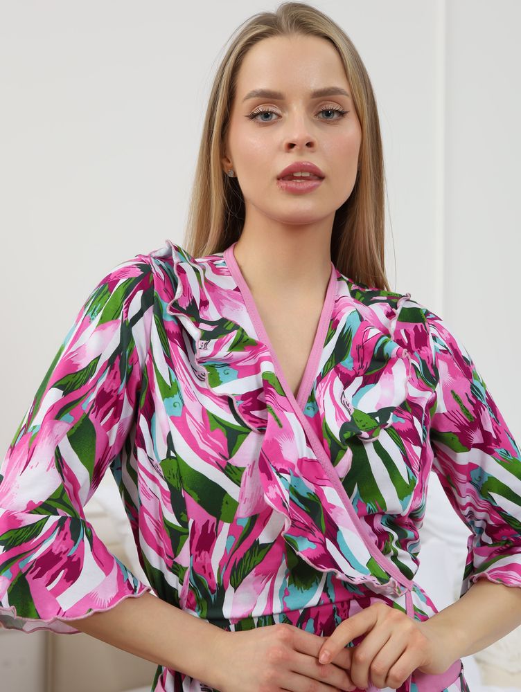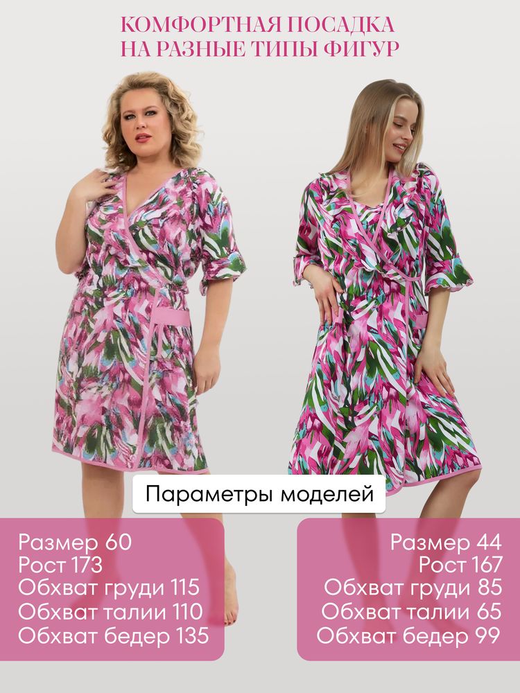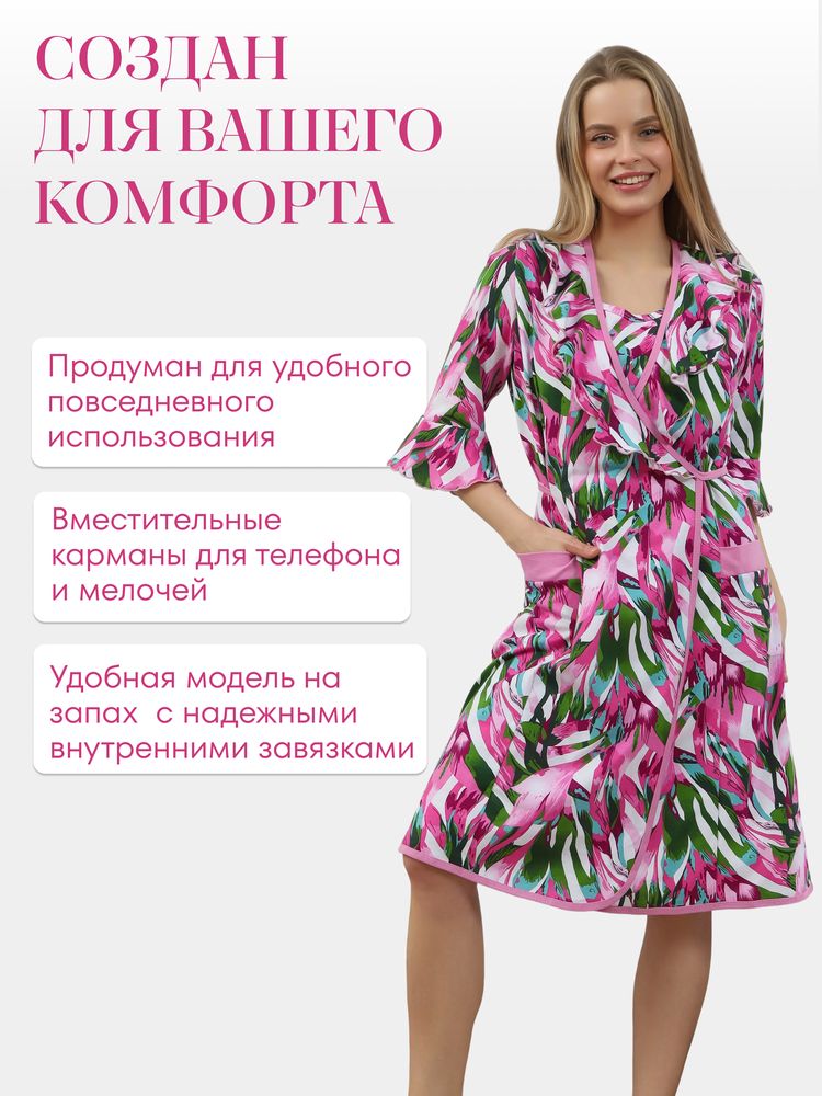 Мягкий халат из хлопка с рукавом 3/4 на запах создан специально для женщин и девушек, которые ценят комфорт и стиль в домашней одежде. Изготовленный из трикотажной кулирки, он идеально подходит на разные размеры, включая больших и полных, а также для беременных и роддома. Особенность модели — v-образный вырез с декоративной отделкой в виде рюш, которые добавляет женственности и легкости образу. Практичные прорезные карманы обеспечивают удобство использования, а запах на завязках позволяет легко подогнать изделие по фигуре. Данная модель халата - отличный выбор для домашнего отдыха и повседневного использования. Этот домашний элемент одежды выполнен с учетом комфорта женщин всех возрастов и особенностей фигуры. Мягкий хлопковый материал бережно касается кожи, обеспечивая приятное ощущение в любое время года. Также изделие отличается продуманным кроем и аккуратной декоративной отделкой, которая подчеркивает индивидуальность и делает халат не только удобным, но и красивым. Удобство модели позволяет использовать ее в разных домашних ситуациях — от утренних сборов до вечернего отдыха. Этот домашний халат с красивым декором понравится многим, кто ищет стильное и функциональное решение на каждый день. Изделие сохраняет форму и мягкость, не сковывая движений. Рукав 3/4 отлично защищает от прохлады, оставаясь при этом удобным и практичным одновременно. Подарок на любой праздник, который точно пригодится — нежная домашняя одежда для тепла, уюта и хорошего настроения каждый день. Выбирая женский халат модель 130, вы получаете качественный, удобный и стильный предмет гардероба.