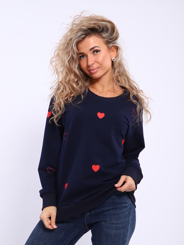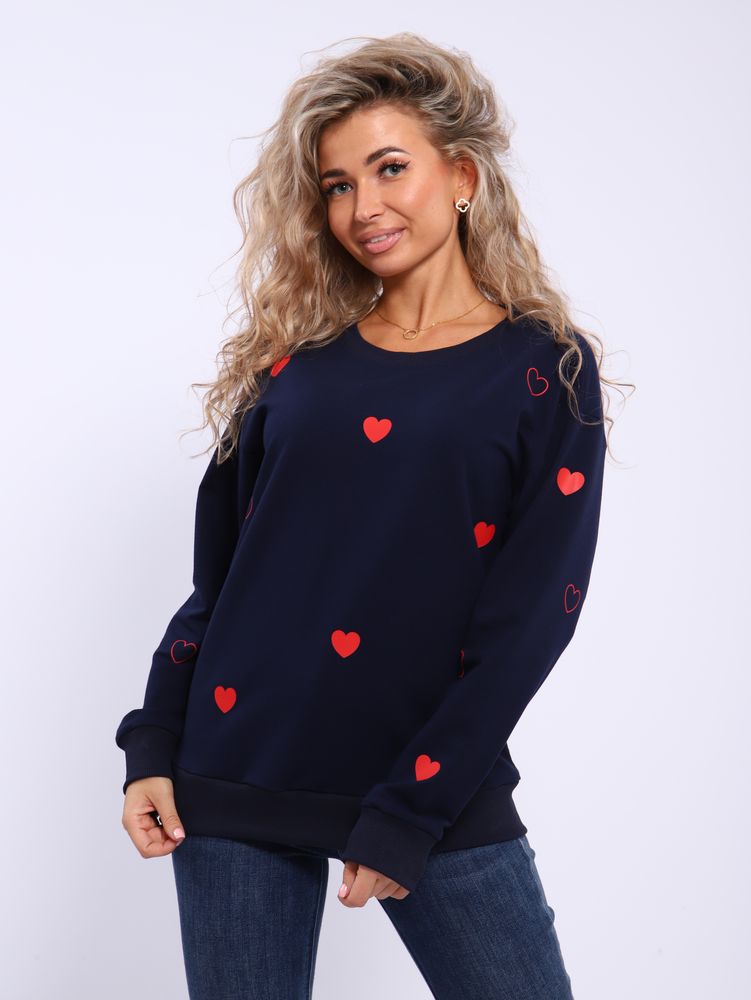 Представляем трикотажный свитшот, сшитый из дышащего материала футер, в составе которого хлопок. Он станет идеальным выбором для женщин и девушек, которые ценят комфорт и стиль. Кофта выполнена из мягкого и качественного материала, что гарантирует удобство и долговечность. Без пуговиц, без начеса и капюшона, свитшот подходит как для летней прохладной погоды, так и для демисезонной, обеспечивая свободу движений и легкость в носке. Свободный крой свитшота с длинными рукавами на манжетах делает его универсальной вещью, которая подойдет как для повседневных прогулок, для школы, так и для более нарядных случаев. Стильный принт в виде сердечек добавляют образу легкости и романтичности. Наш свитшот подчеркнет вашу индивидуальность. Будьте модными благодаря нашему свитшоту с сердечками, выглядите стильно и привлекательно в любой ситуации.
