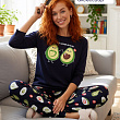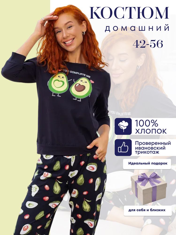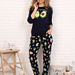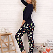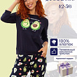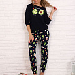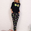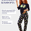 Пижама женская с веселым принтом. Рисунок не только милый, но и качественный, выполнен с использованием современных технологий. Кофта-лонгслив с рукавом 3/4 полуприлегающего кроя. Длинные пижамные брюки-джоггеры с поясом на удобной резинке, с двумя удобными карманами. Резинка закреплена на поясной машине, не переворачивается при стирке. Тип посадки брюк – средняя. Рост универсальный, так как брюки на манжетах. Длина брюк по внутреннему шву 79 см. Ткань – трикотажная кулирная гладь из хлопка, мягкая, лёгкая, очень комфортная. Она не скатывается, сохраняет форму и цвет после множества стирок. Размерная сетка 42-56. Для создания эффекта оверсайз рекомендуем брать на один-два размера больше. Пижама отличный подарок для всех девушек и женщин: маме, подруге, бабушке, сестре, коллеге на любой праздник!