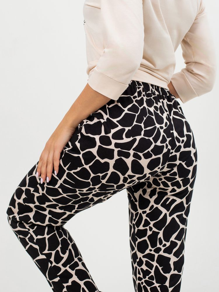 Домашний женский костюм с веселым принтом. Рисунок не только милый, но и качественный, выполнен с использованием современных технологий. Кофта-лонгслив с рукавом 3/4 полуприлегающего кроя. Длинные пижамные брюки-джоггеры с поясом на удобной резинке, с двумя удобными карманами. Резинка закреплена на поясной машине, не переворачивается при стирке. Тип посадки брюк – средняя. Рост универсальный, так как брюки на манжетах. Длина брюк по внутреннему шву 79 см. Ткань – трикотажная кулирная гладь из хлопка, мягкая, лёгкая, очень комфортная. Она не скатывается, сохраняет форму и цвет после множества стирок. Размерная сетка 42-56. Для создания эффекта оверсайз рекомендуем брать на один-два размера больше. Пижама отличный подарок для всех девушек и женщин: маме, подруге, бабушке, сестре, коллеге на любой праздник!