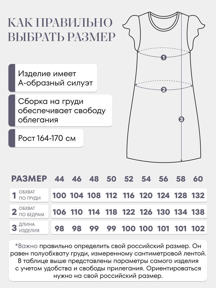 Длина ночной сорочки 98-102 см в зависимости от размера.