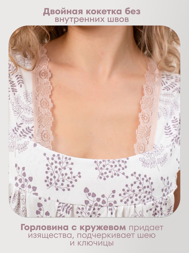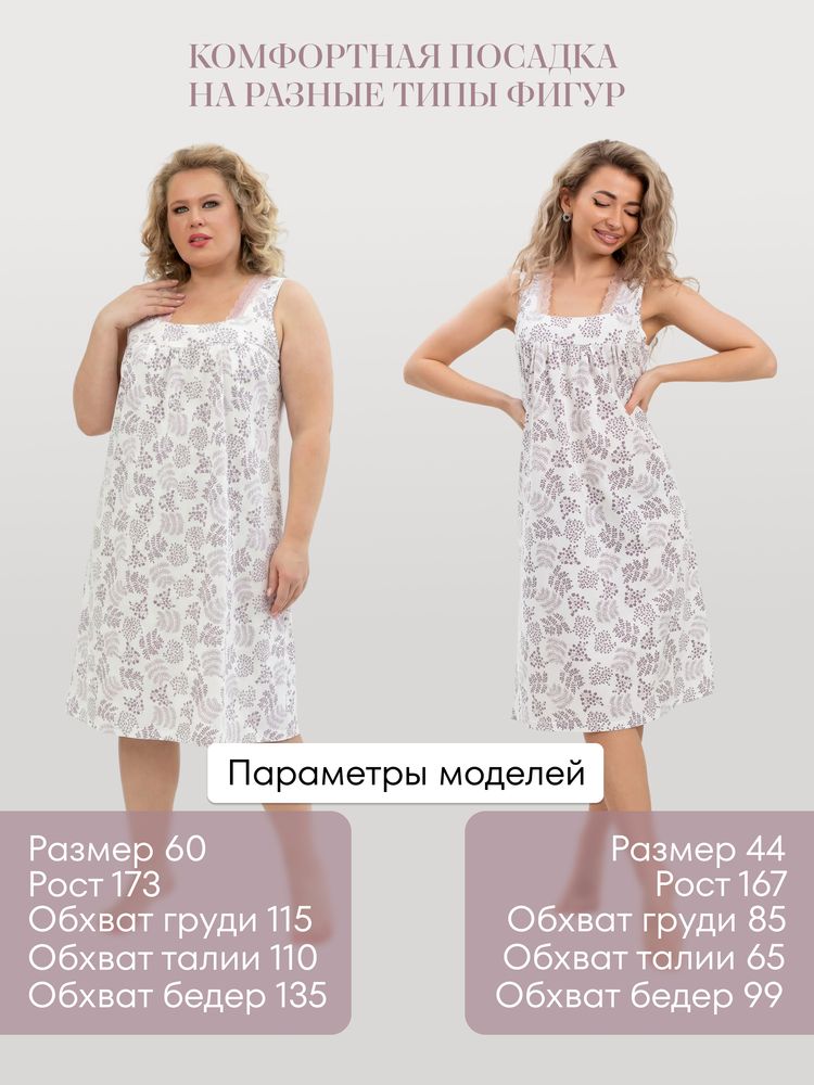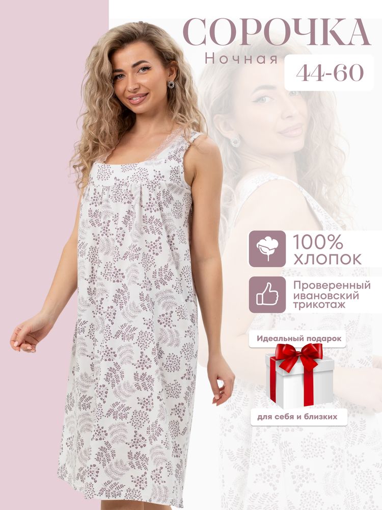 Ночная сорочка из качественного трикотажа (кулирка) на широких бретелях с кружевом. Размерный ряд 46-60. Состав ткани - хлопок 100 %