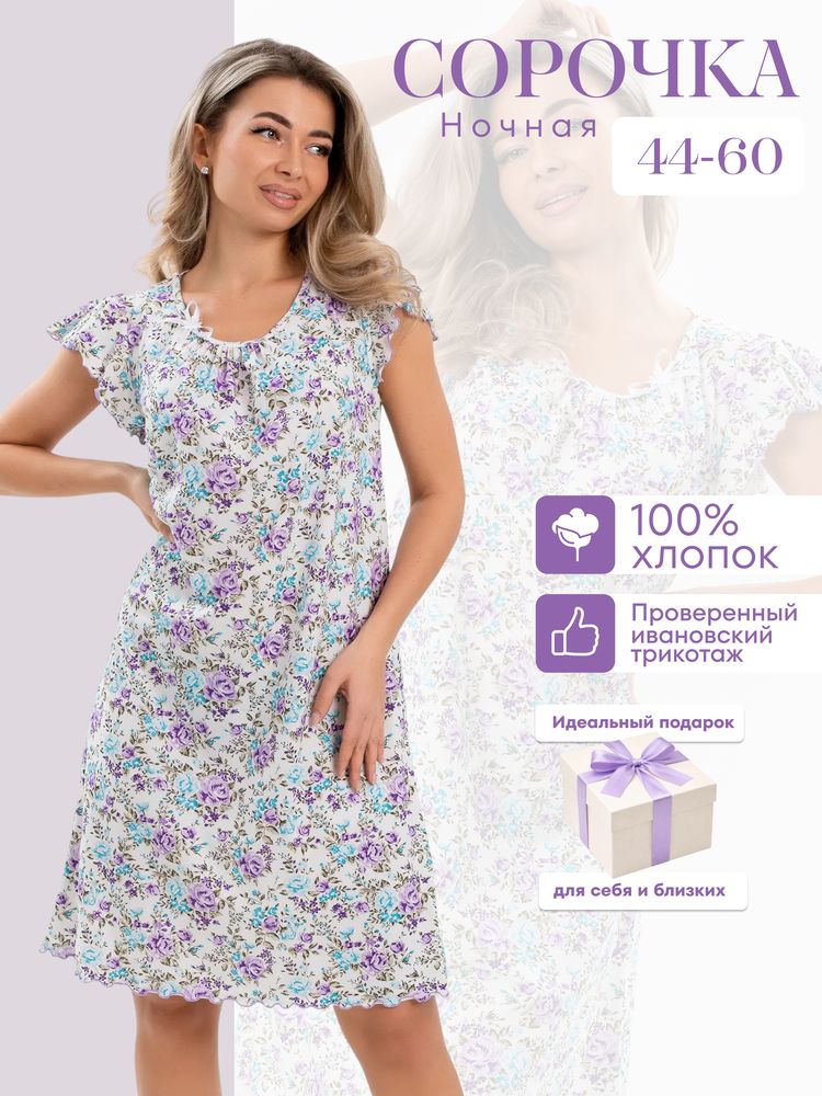 Длина ночной сорочки 98-102 см в зависимости от размера.