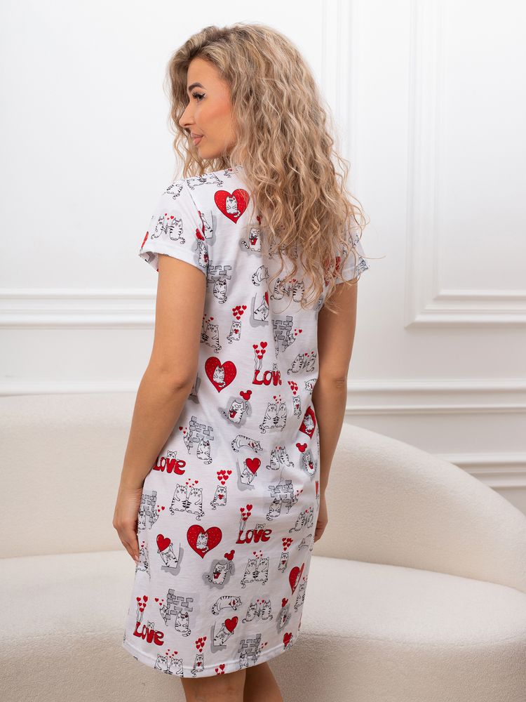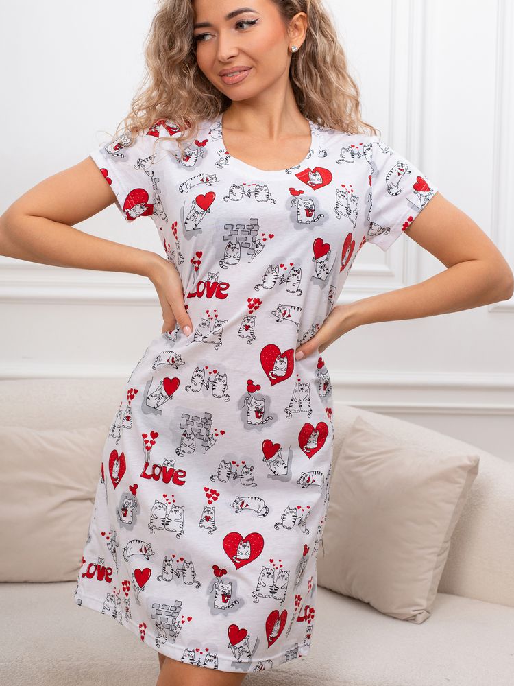 Откройте для себя идеальную ночную сорочку — сочетание стиля и комфорта. Эта женская ночная рубашка, выполненная из мягкого хлопка, станет вашим любимым выбором для сна. Идеально подходит как для девушек, так и для подростков, она воплощает в себе молодежный стиль и милый дизайн. Эта футболка для сна представлена в виде туники с коротким рукавом, что делает ее легкой и комфортной для летних ночей. Трикотажное изделие свободного кроя обеспечивает максимальный комфорт и свободу движений, что особенно важно для беременных женщин. Ночнушка доступна в больших размерах, что позволяет каждой женщине найти идеальную посадку. Прямой крой и короткая длина делают ее универсальной одеждой для дома. Принт с милым рисунком добавляет игривости и индивидуальности вашему образу. Выбирайте ночную сорочку для комфортного и стильного отдыха. Это домашнее трикотажное изделие станет незаменимой частью вашего гардероба, обеспечивая уют и комфорт каждую ночь. Домашняя и повседневная одежда — это прекрасный выбор для подарка на такие замечательные праздники, как 8 марта или 14 февраля. Независимо от того, планируете ли вы порадовать бабушку, маму, дочь или подругу, наша продукция станет символом заботы и внимания к вашим близким. Подарив им такую одежду, вы не только проявите своё отношение, но и подарите комфорт и тепло, которые они смогут ощущать каждый день.