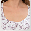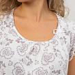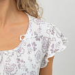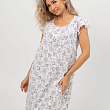 Перед Вами милая и нежная женская сорочка для комфортного сна. Лёгкая ночнушка свободного кроя прекрасно сидит на фигуре любого типа. Изготовлена из 100% натурального хлопка, ткань мягкая, дышащая и приятная к телу, прекрасно тянется.  В то же время ткань достаточно плотная, не просвечивает. Очень мило смотрятся нежные веточки лаванды, мелкие изящные цветочки, кружевные сердечки на светлом фоне. Рукав –крылышко со сборками дает полную свободу движений. Отделка рукава и низа изделия (обметочная строчка с вытяжкой ткани) смотрится легко, воздушно. Небольшое изящное украшение из атласной ленточки на овальном вырезе горловины завершает нежный образ. Длина изделия – чуть ниже колена. Рост сорочки универсальный. Силуэт сорочки расклешенный, она прекрасно подойдёт также будущим мамам. Размерный ряд 44-60.