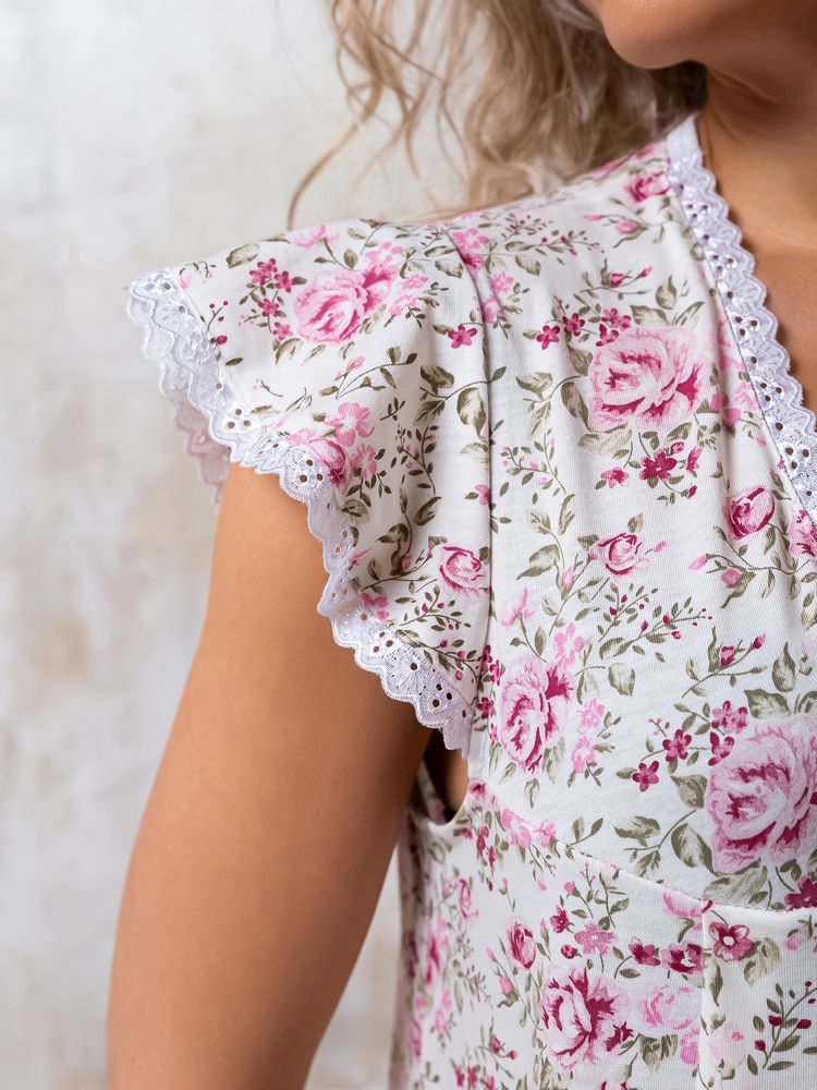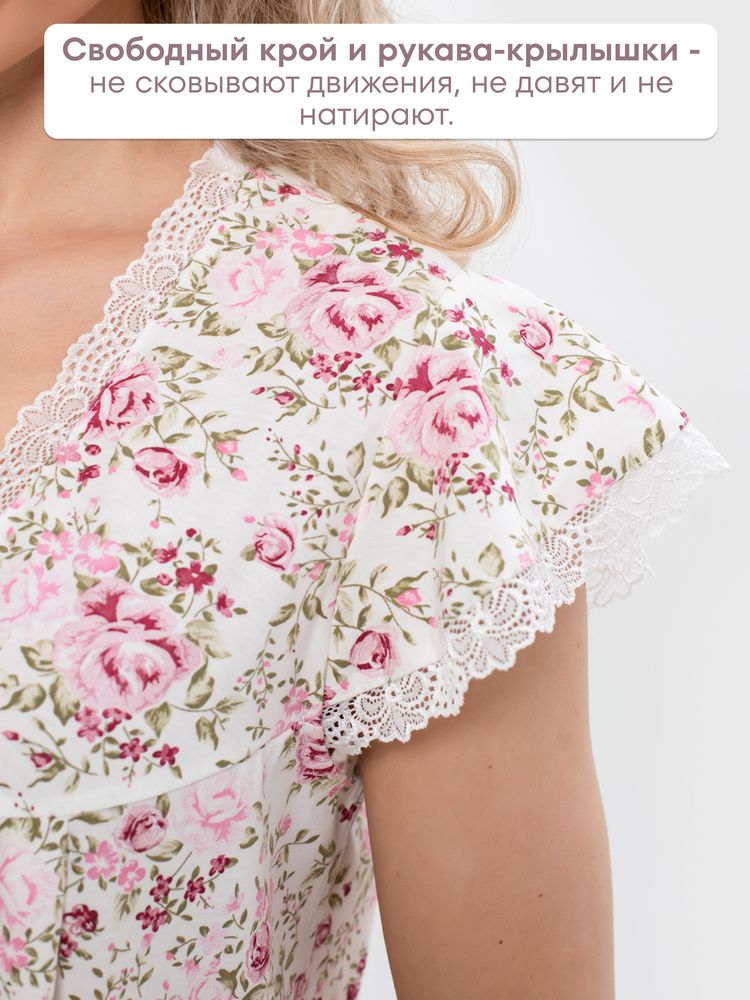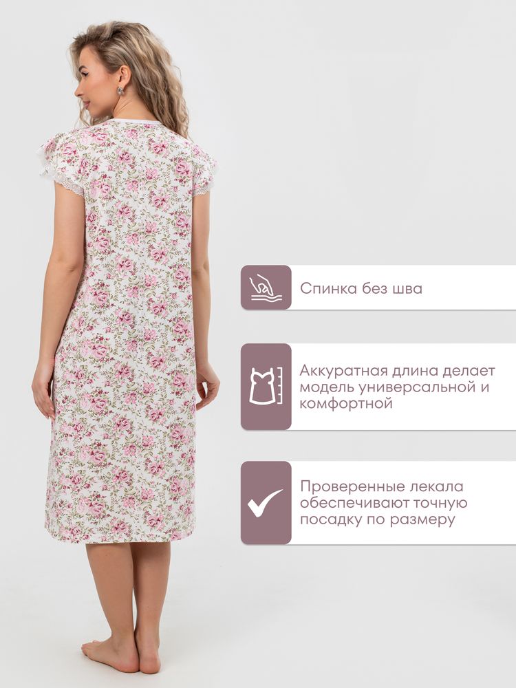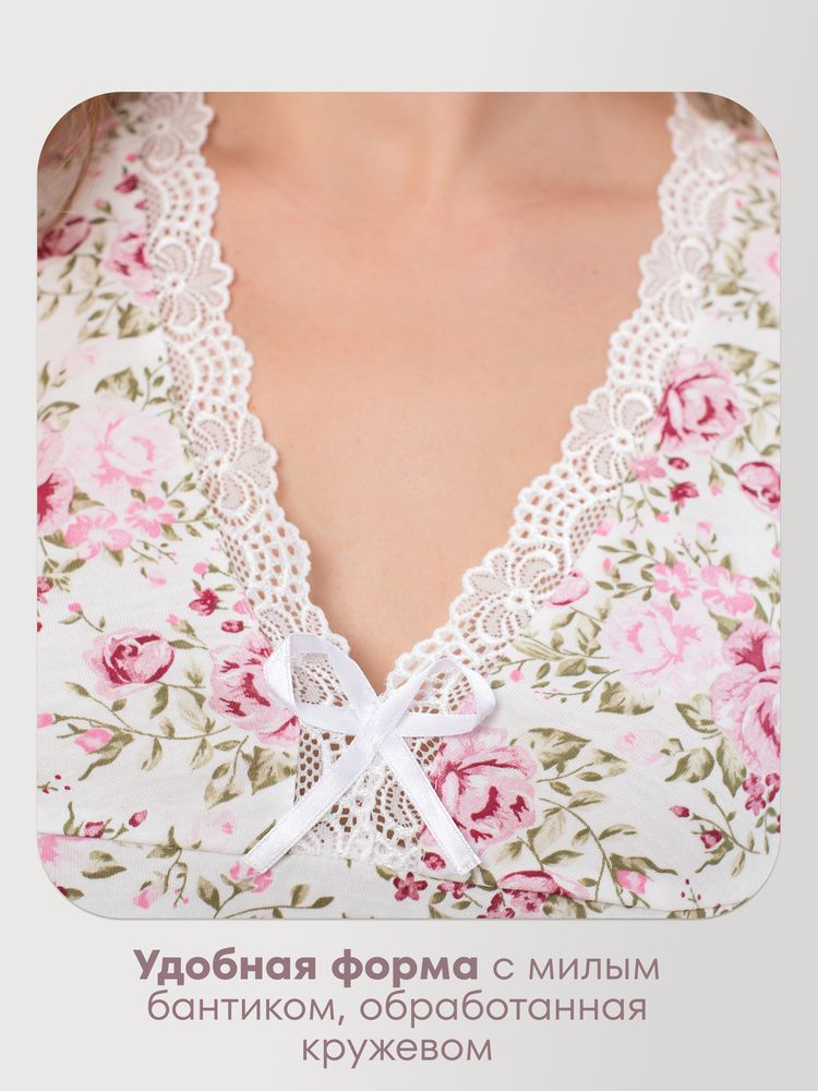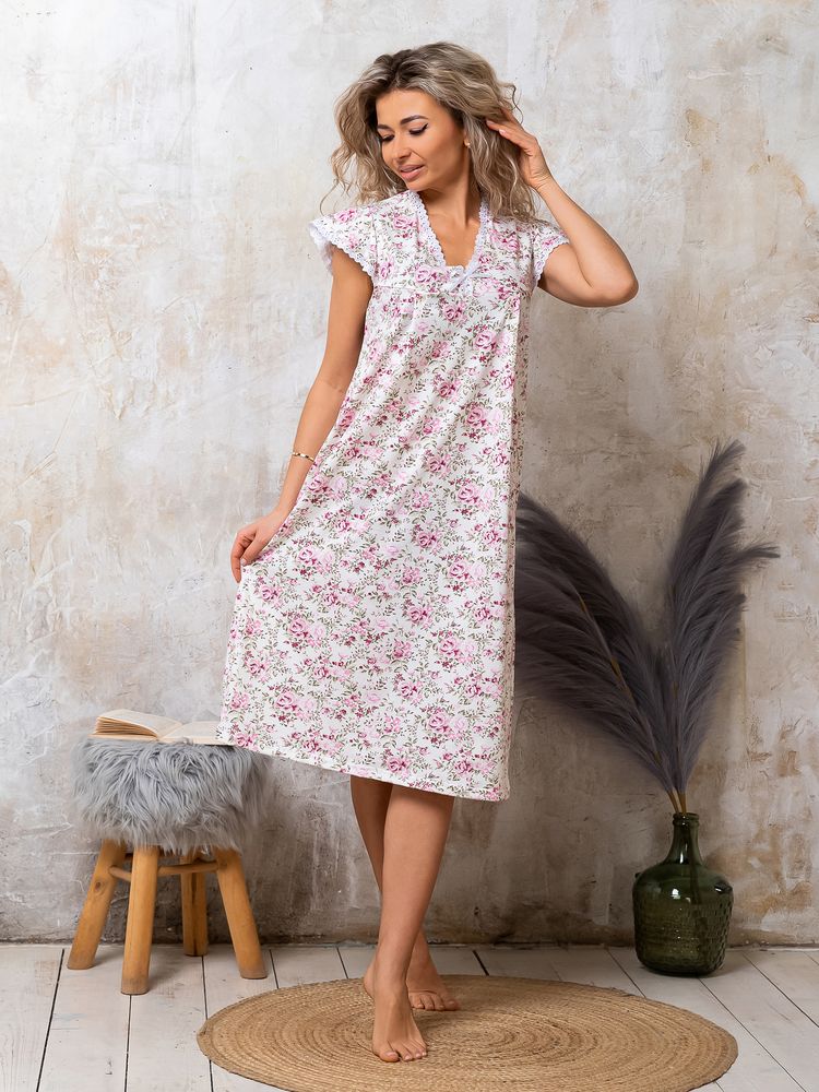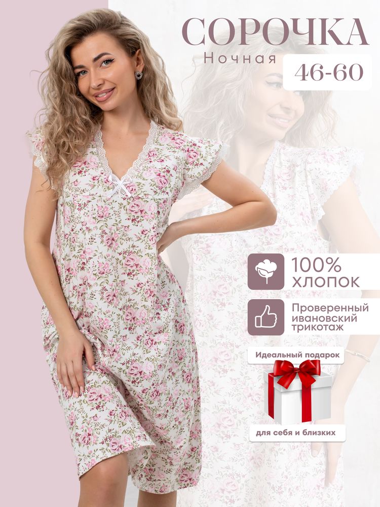 Ночная сорочка из качественного трикотажа (кулирка) с отделкой шитьем. Размерный ряд 46-60. Состав ткани - хлопок 100 %