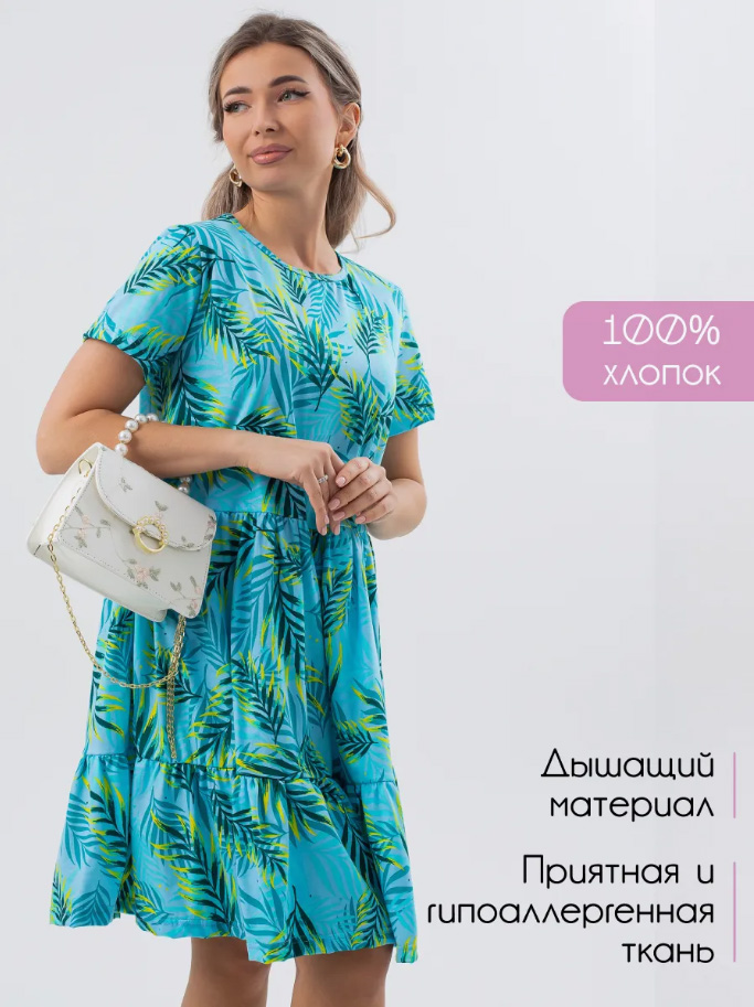 Мягкое, удобное, трикотажное женское платье модель 174 - сочетание элегантности, комфорта и стиля! Универсальный предмет женской одежды можно успешно комбинировать с разнообразными аксессуарами, надевать на работу, в офис, прогулку с детьми по парку, на пляж, на дачу. Женское платье отлично подходит для любого типа фигуры. Благодаря свободной посадке и качественному материалу, это изделие прекрасный вариант для беременных женщин. Изготовленное из 100% хлопка, оно обеспечивает мягкость и натуральность материала, что делает его приятным на ощупь и удобным в носке. Платье свободного кроя с коротким рукавом и круглым вырезом горловины - базовая основа практичного и повседневного наряда, который украсит даму любого возраста и комплекции. Кокетливые воланы придают изделию воздушность и женственность. Легкое хлопковое домашнее платьице подходит к разным ситуациям, такие как: выписка из род дома, день рождения, новый год и т.д. Многообразие модных, красивых, ярких расцветок и большой размерный ряд (от 44 до 56 размера) помогут подобрать для себя идеальный вариант платья для создания стильных образов: городского, делового, вечернего, романтического, спортивного. Выбирая платье женское модель 174, вы получаете стильный и комфортный элемент гардероба, который будет радовать вас своим качеством и удобством.
